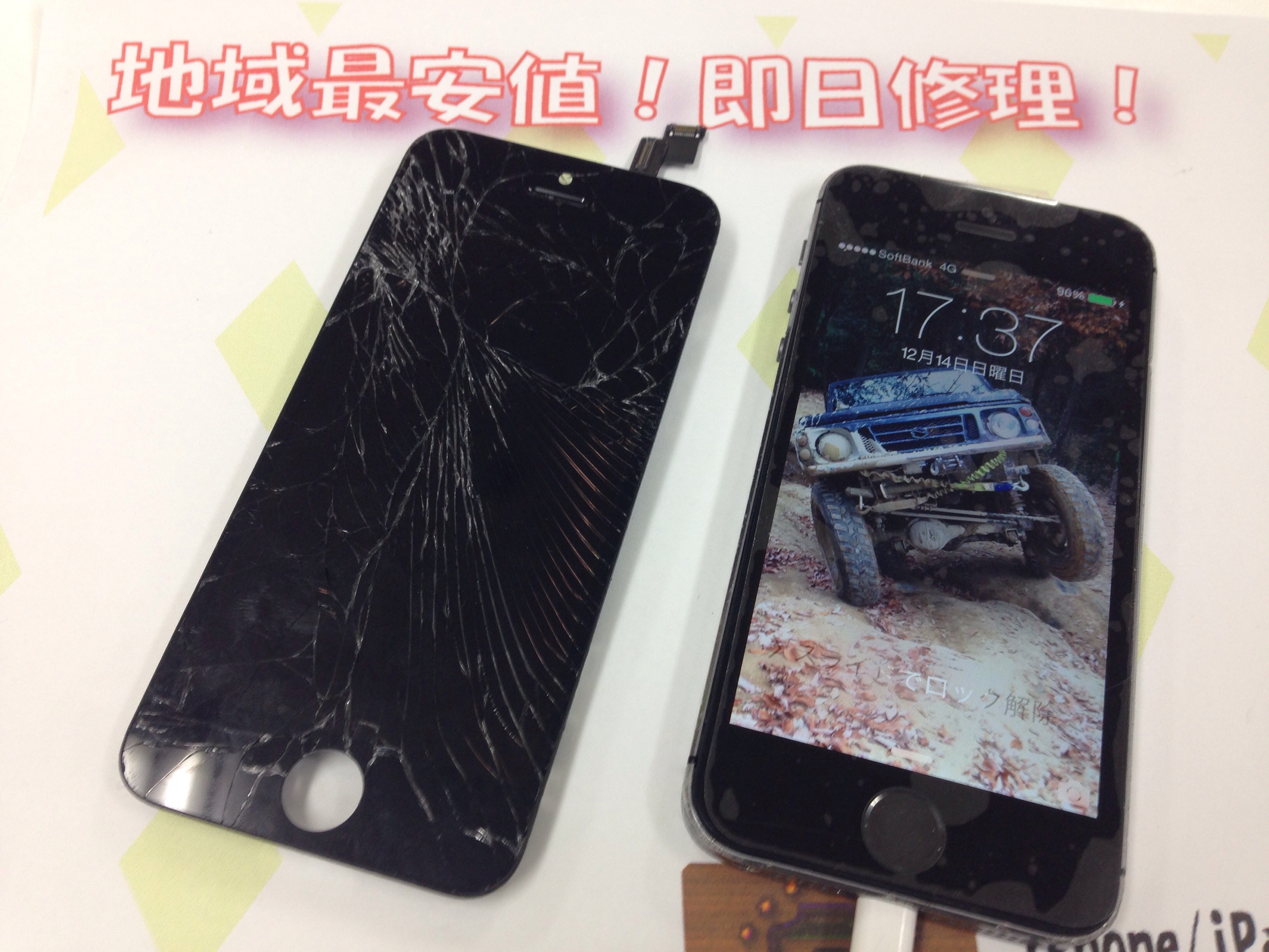 iPhone5s ガラス割れ/液晶修理 ¥12,800