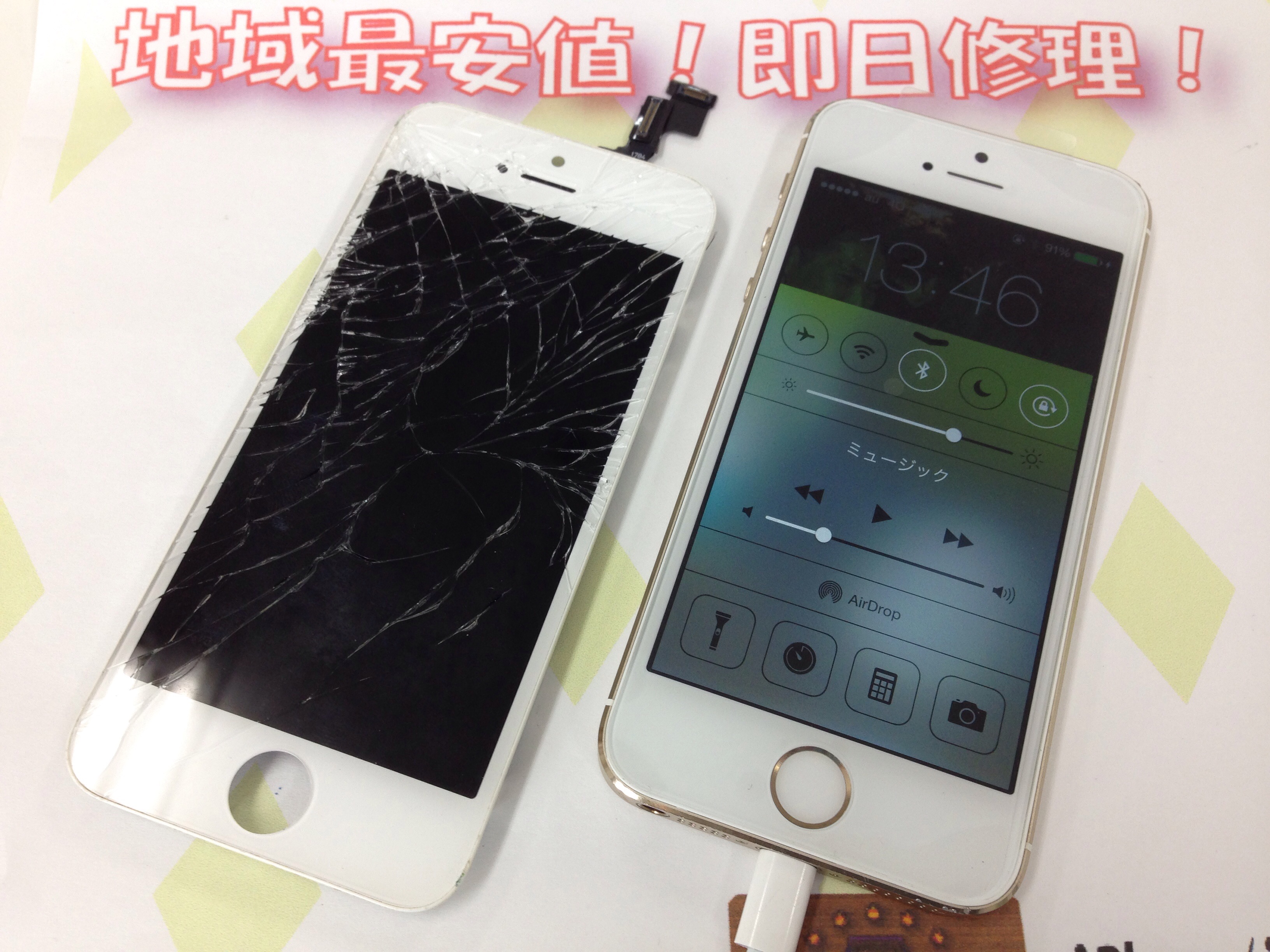 iPhone5s ガラス割れ/液晶修理 ¥12,300(Facebook割適用)