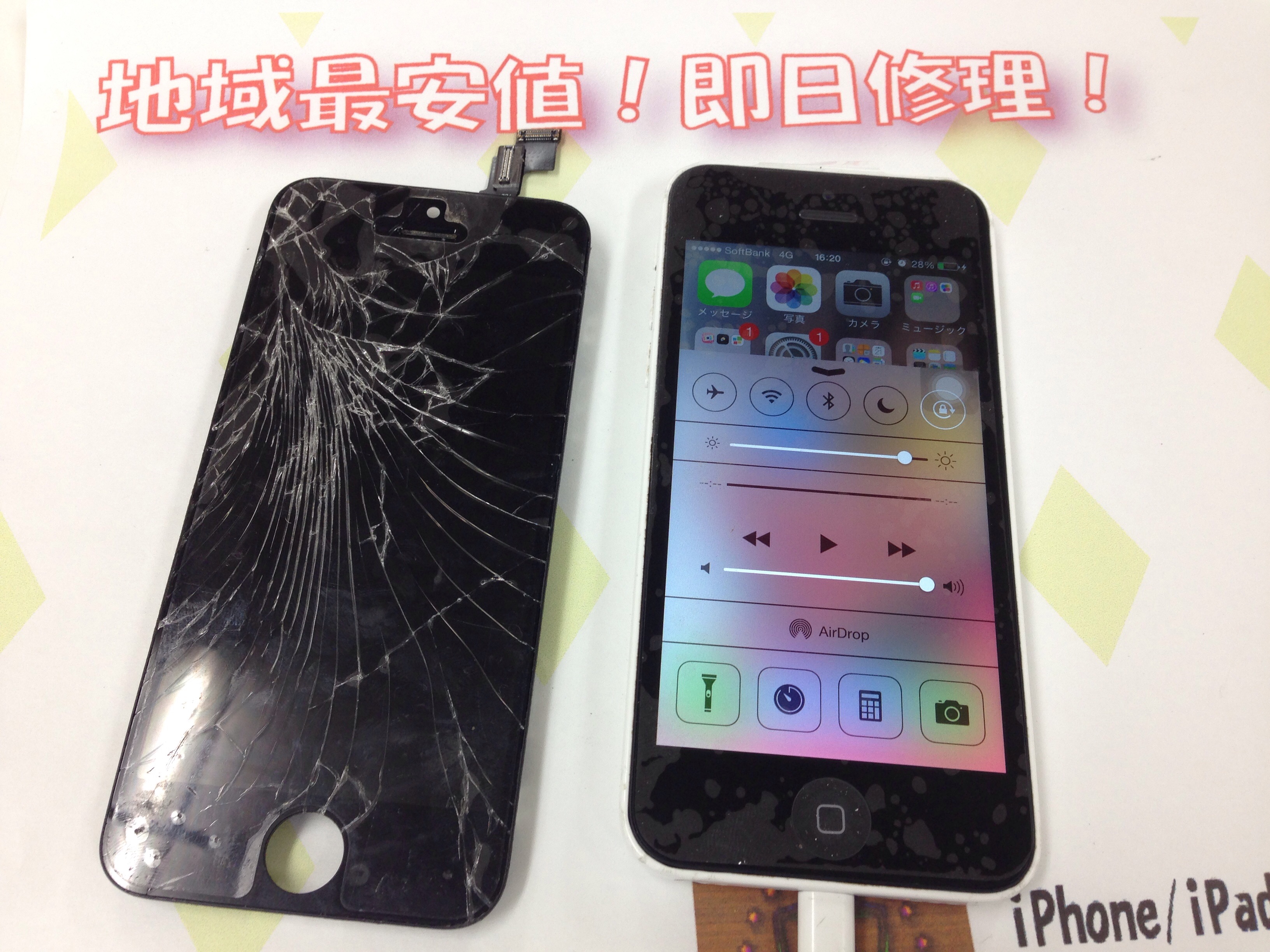 iPhone5s ガラス割れ/液晶修理 ¥12,800