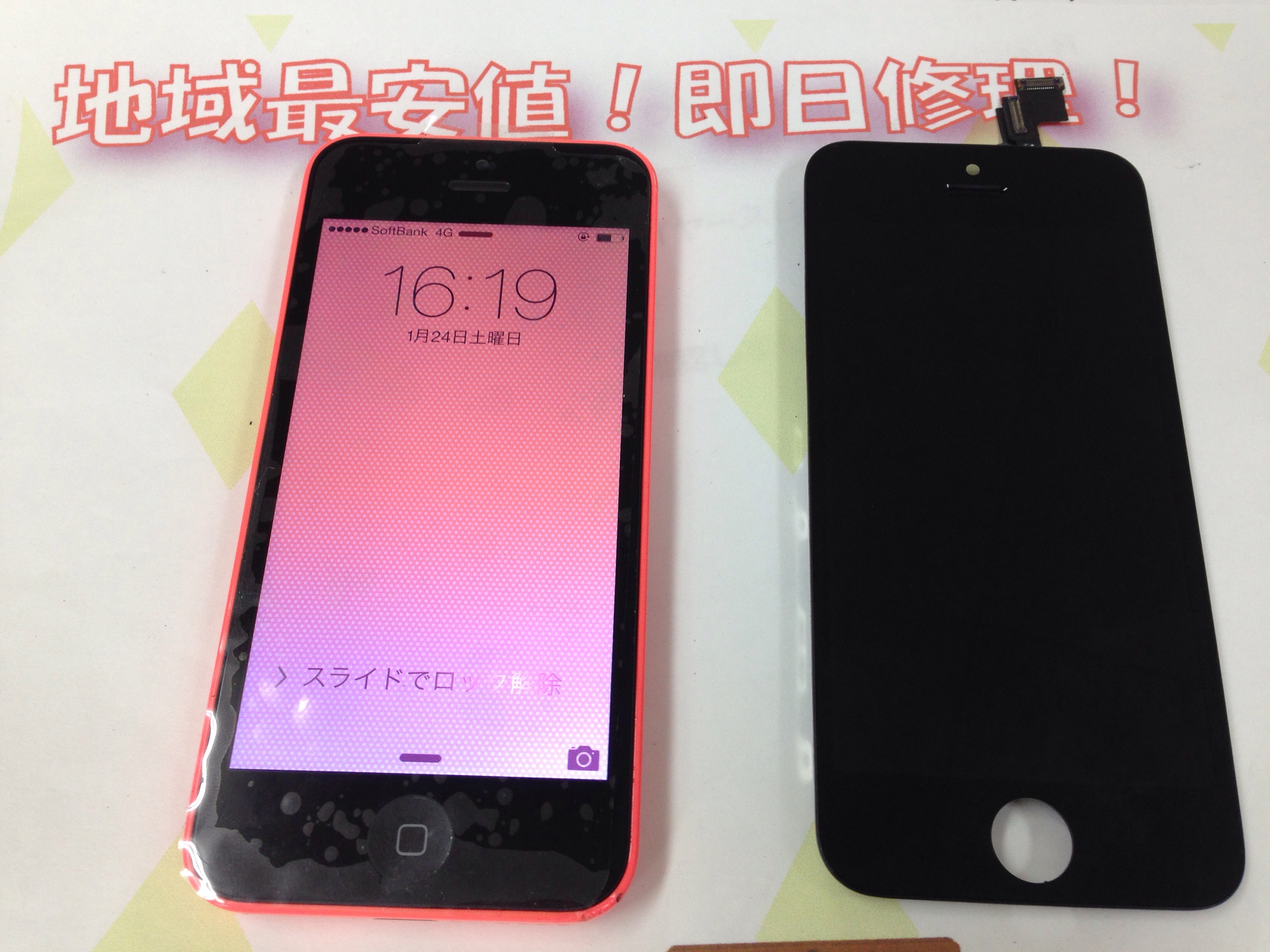 iPhone5c ガラス割れ/液晶修理 ¥12,800