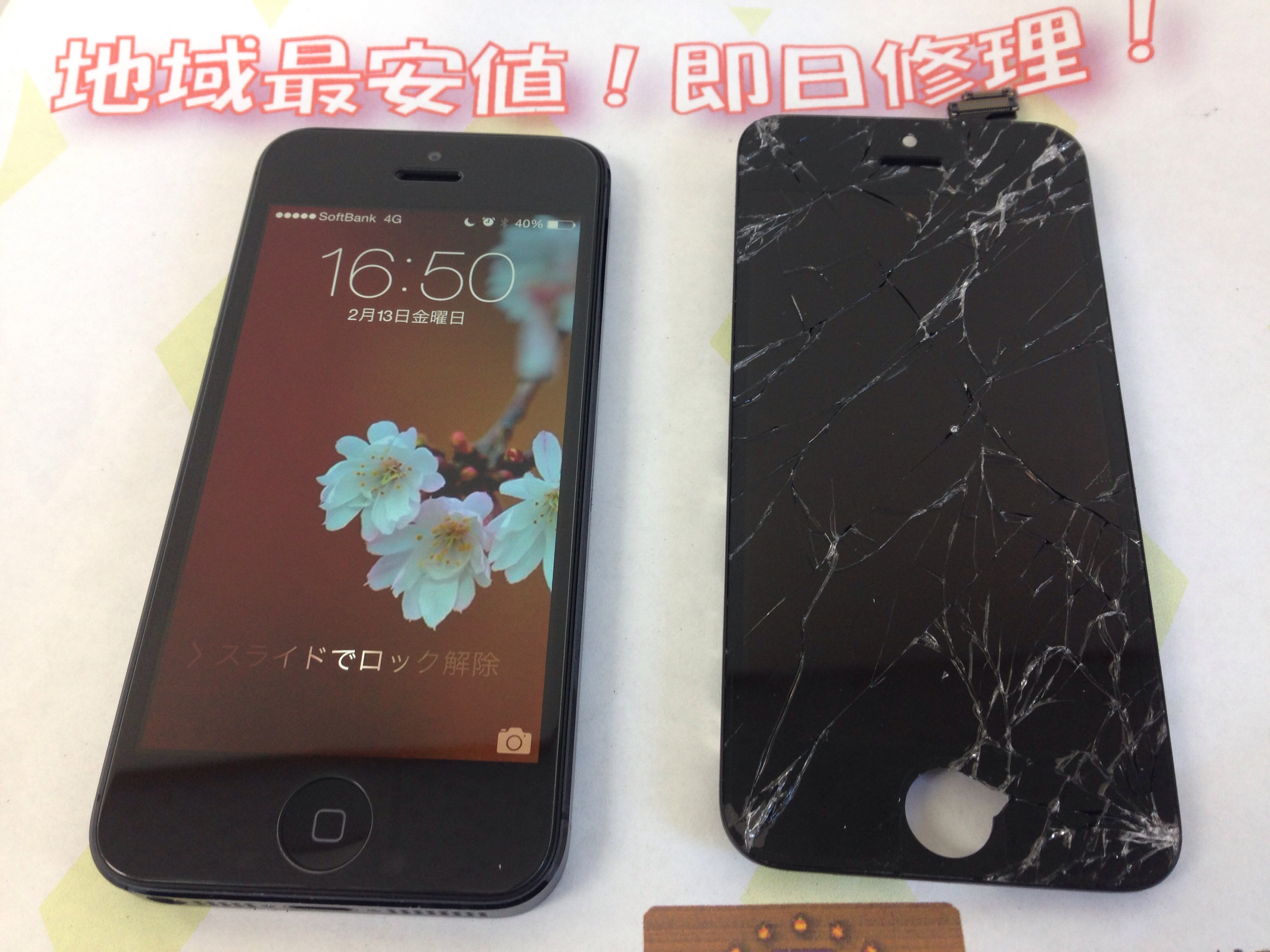 iPhone5 ガラス割れ/液晶修理 ¥9,800