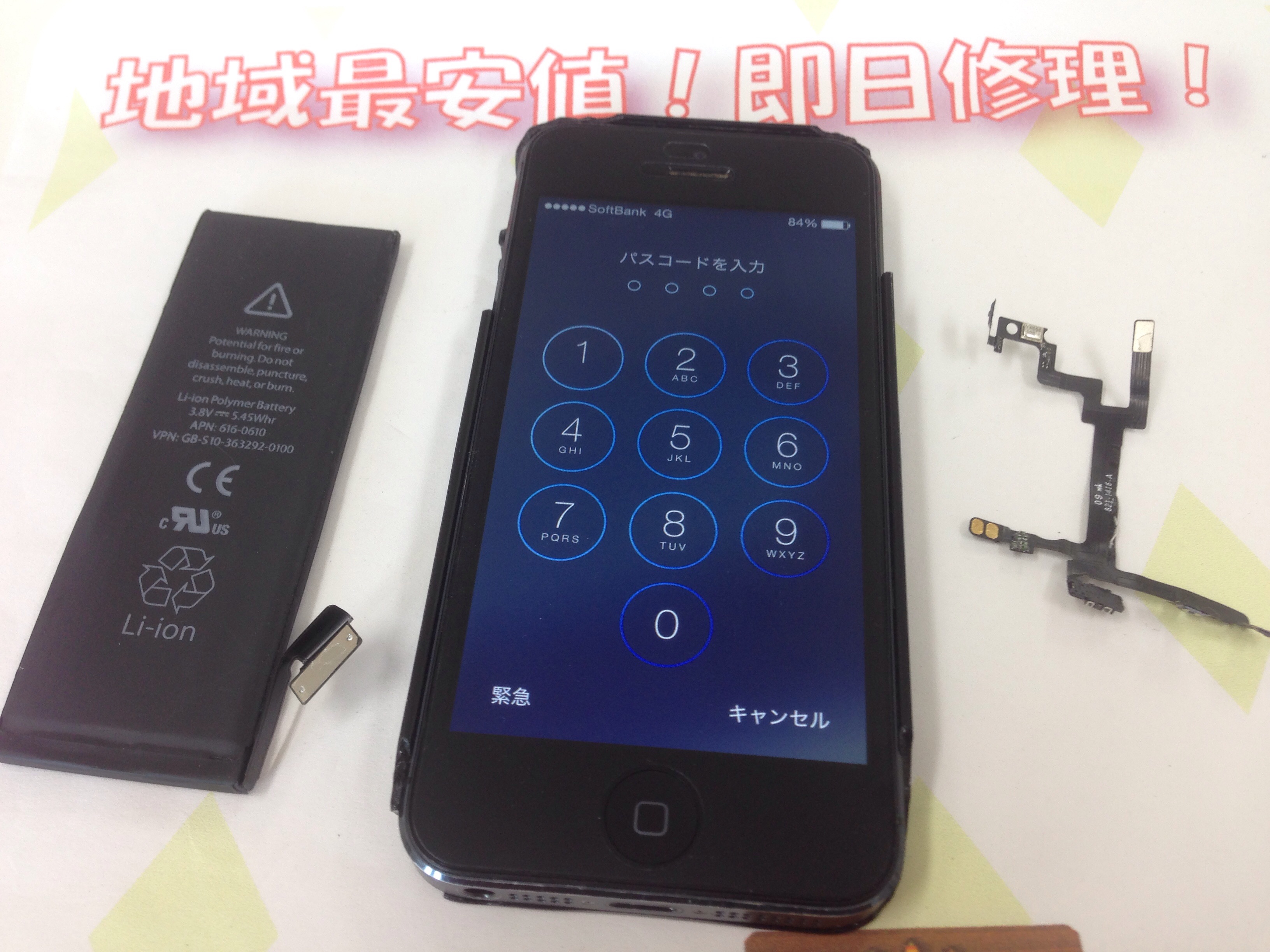 小野市よりiPhone5 バッテリー交換&スリープボタン修理をご依頼いただきました。
