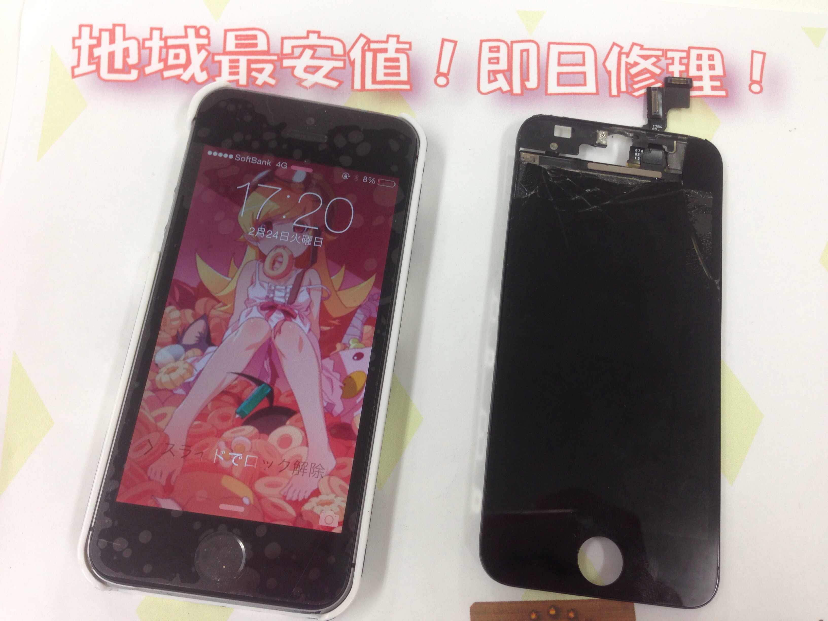 iPhone5s ガラス割れ/液晶修理 ¥12,800
