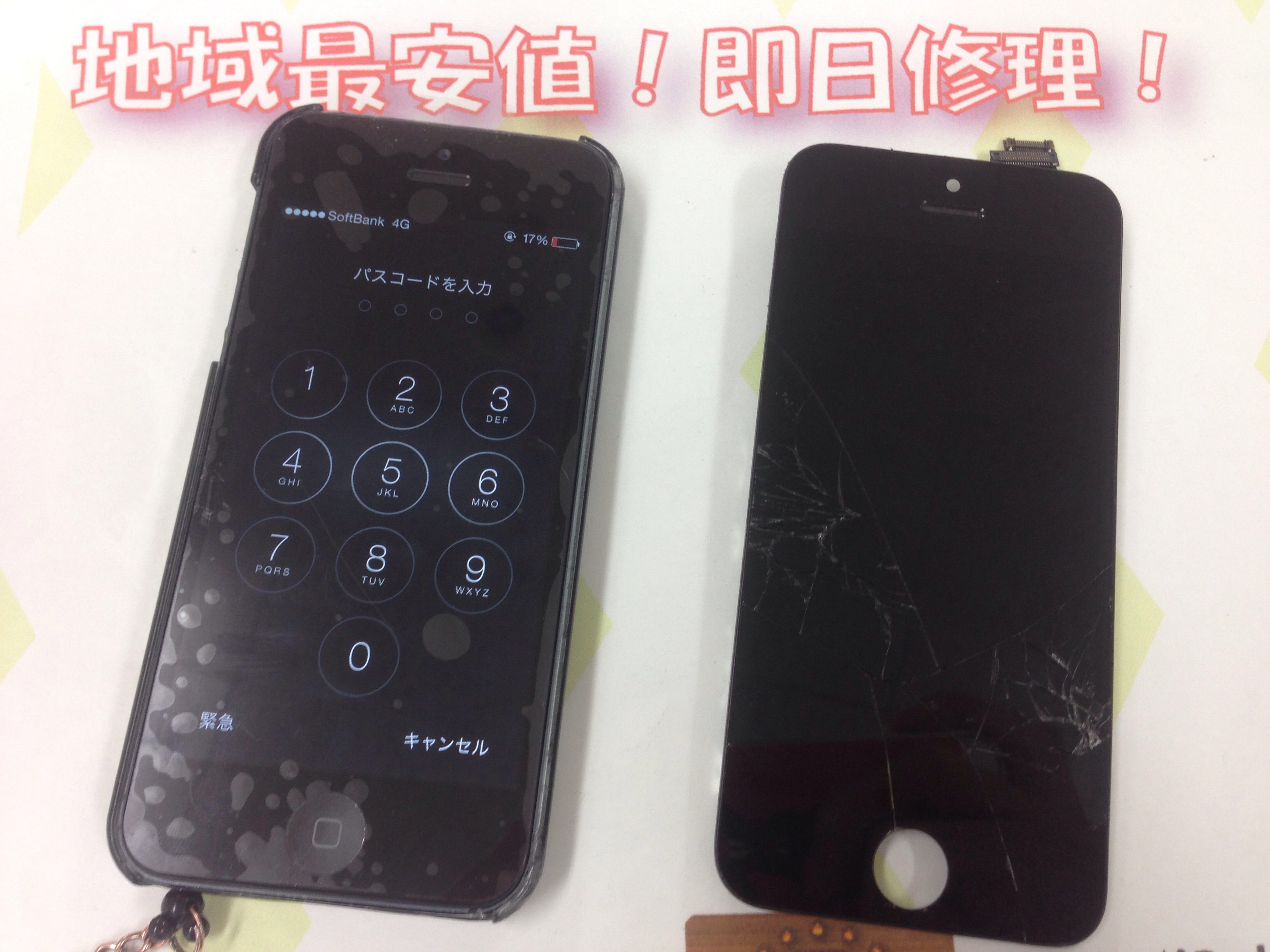 iPhone5 ガラス割れ/液晶修理 ¥9,800