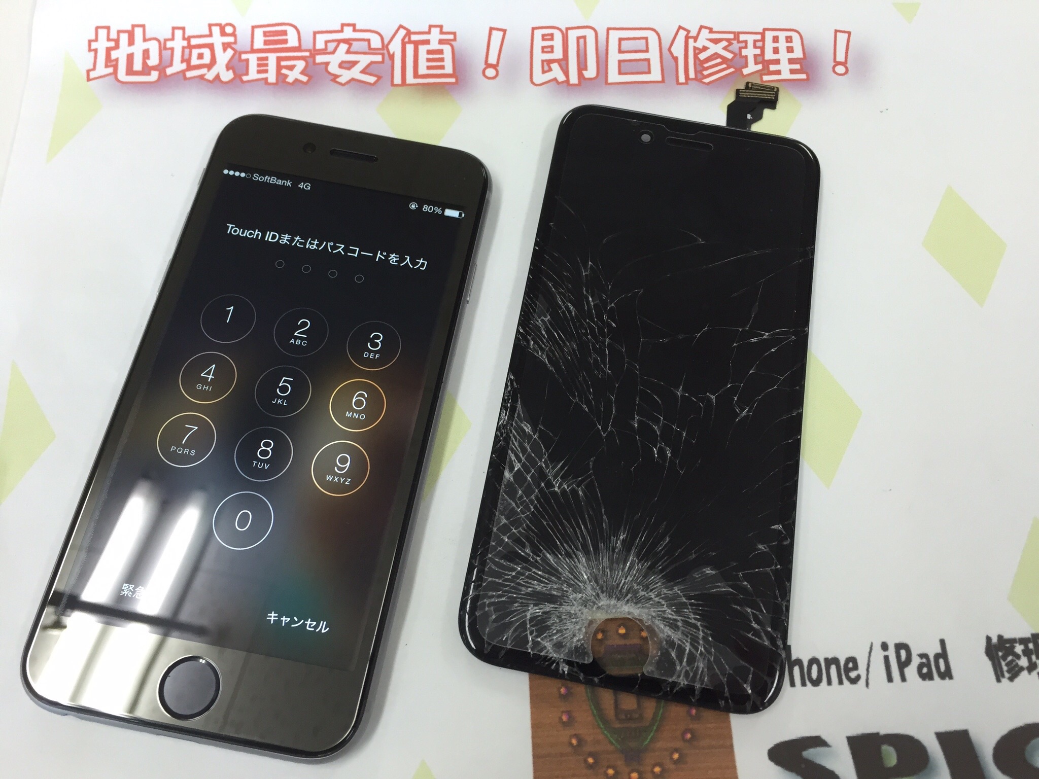 iPhone6 ガラス割れ修理 ¥24,800