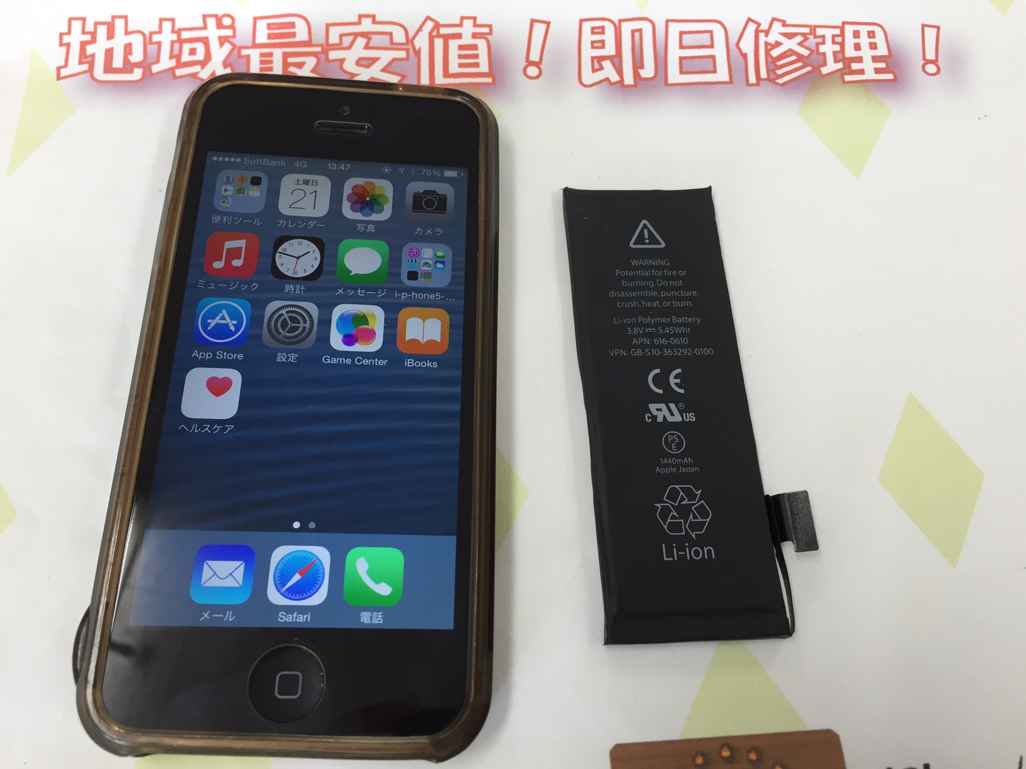 発売から2年以上経過しているのでバッテリーが劣化し始め、iPhone5のバッテリー交換依頼が増えてきております。