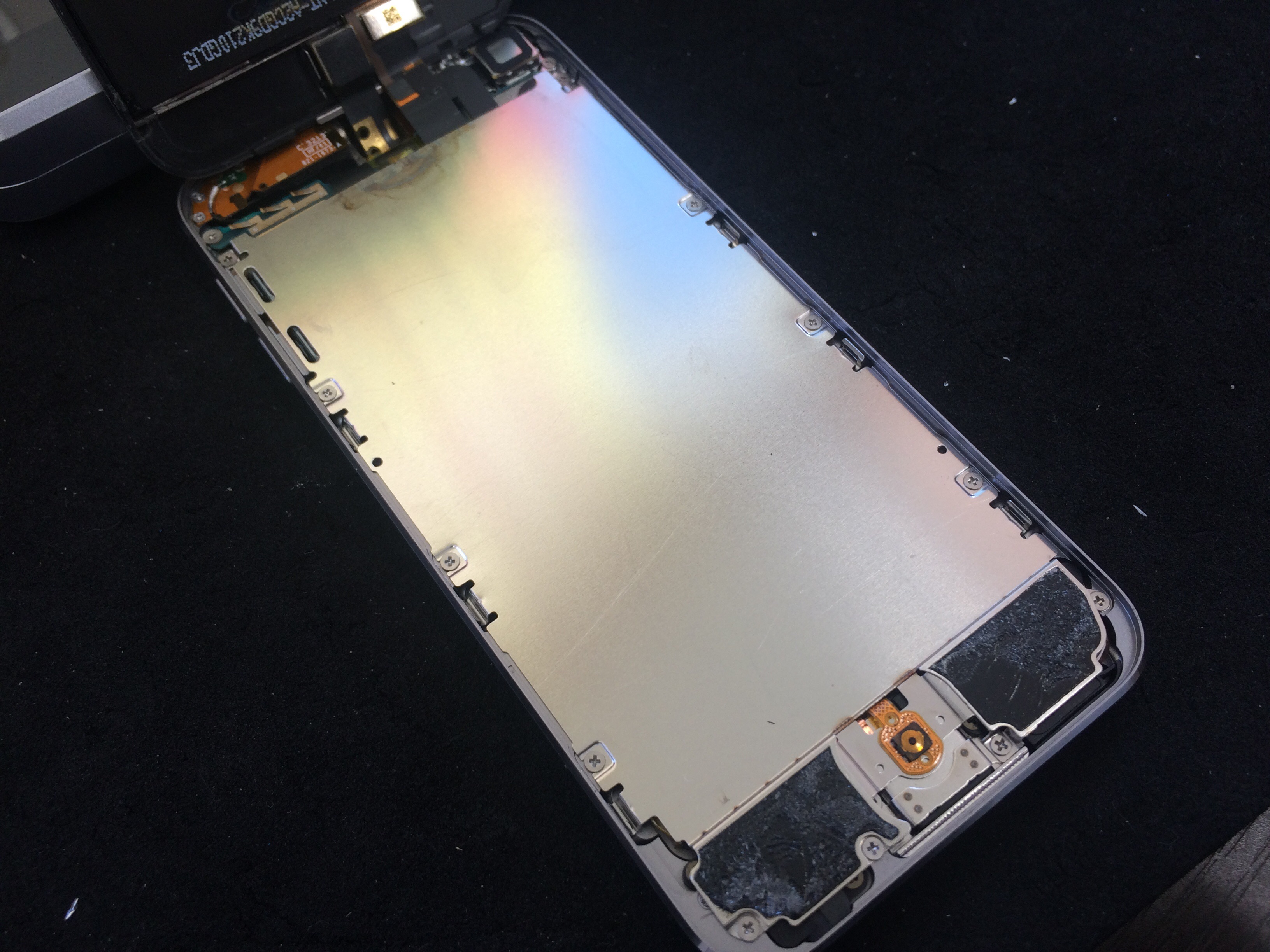 ホームボタンが陥没してしまい押せないという症状は多いのですがこちらのお客様のiPodは押した感触はするが全く反応しない、押していないのに反応したりSiriが勝手に起動するという症状でした。