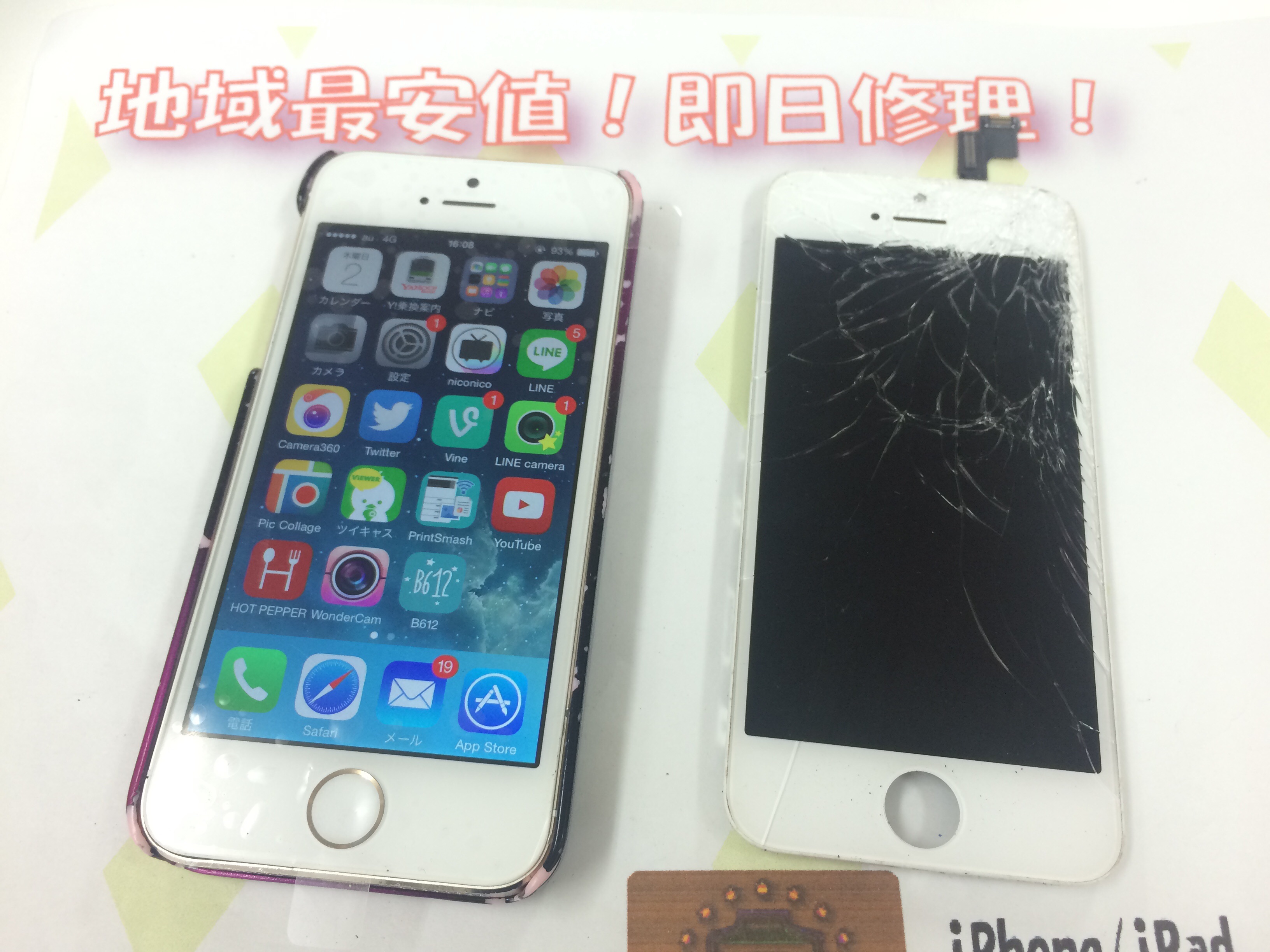 iPhone5s ガラス割れ/液晶修理 ¥11,800(学割適用)