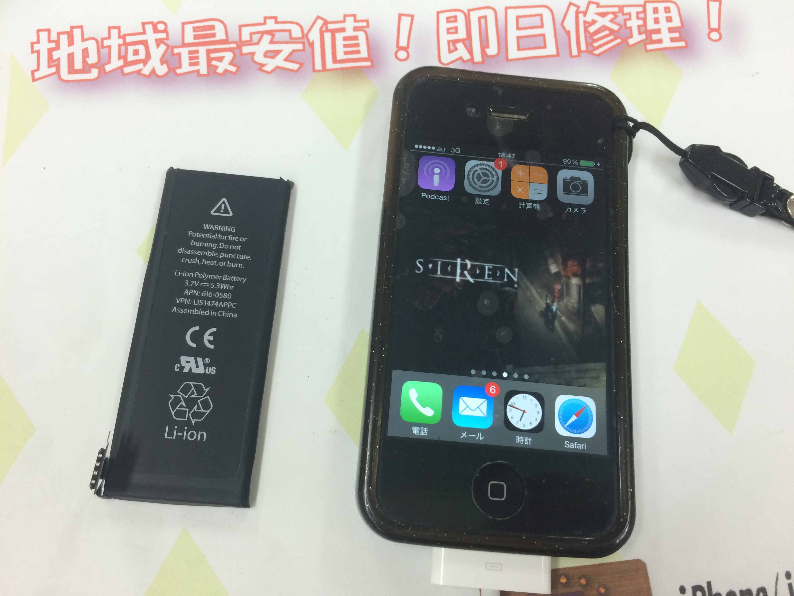 iPhone4s バッテリー交換 ¥4,800