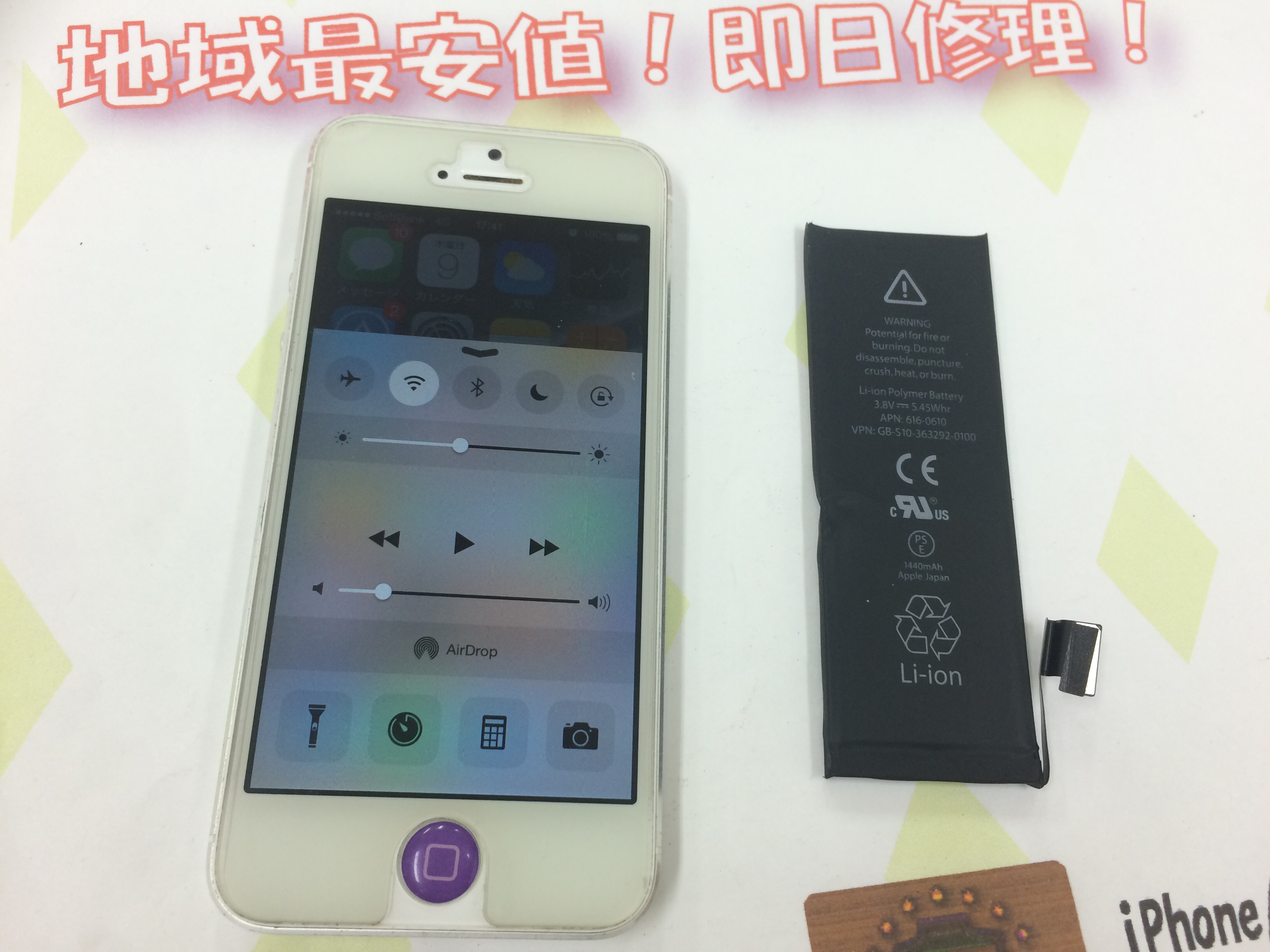 小野市よりiPhone5 バッテリー交換をご依頼いただきました。