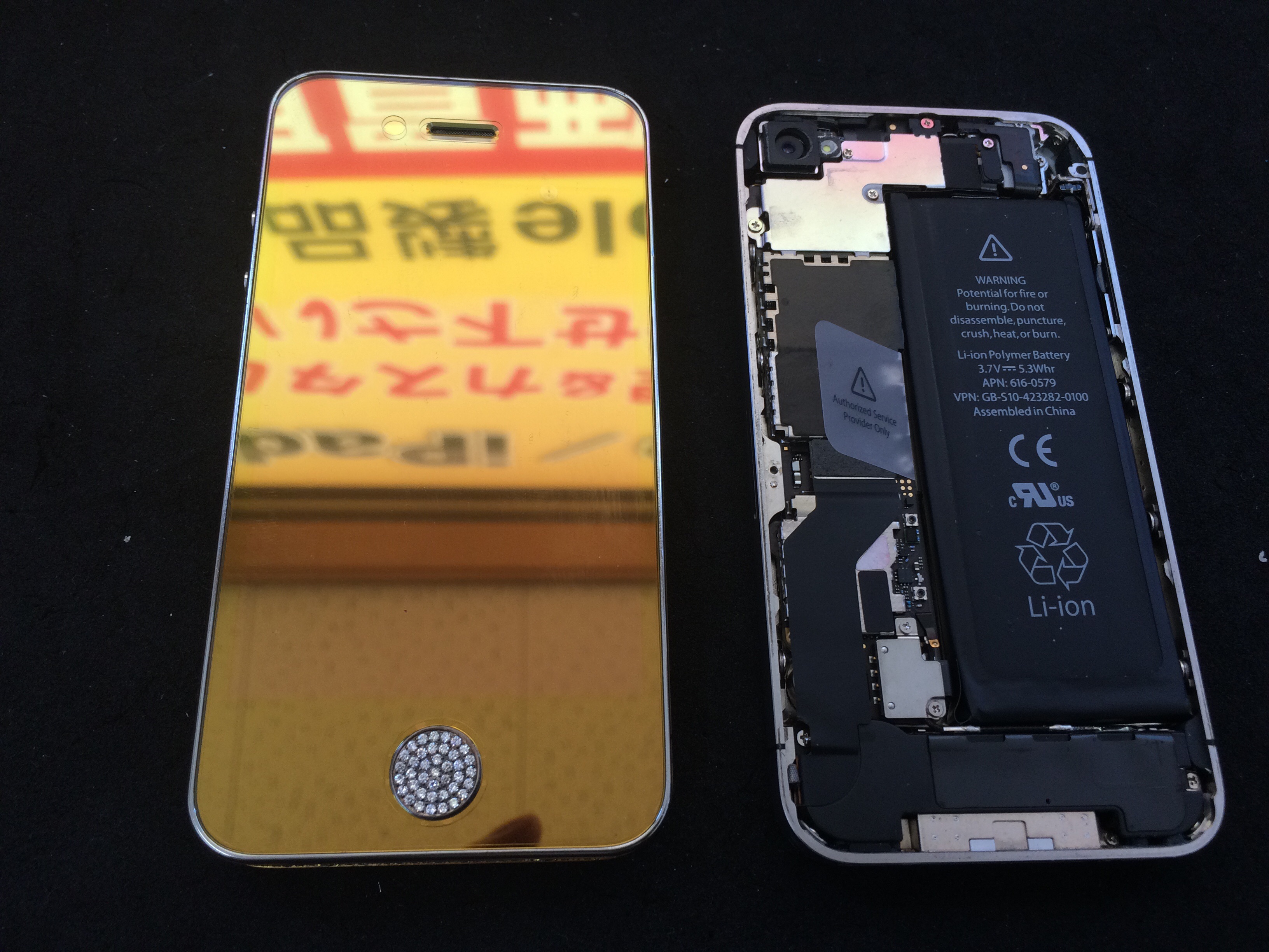 他店でカスタムされたiPhone4sが3Gの電波を拾わないので、オークションで正常に動作する本体を購入され基板の入れ替え作業を承りました。