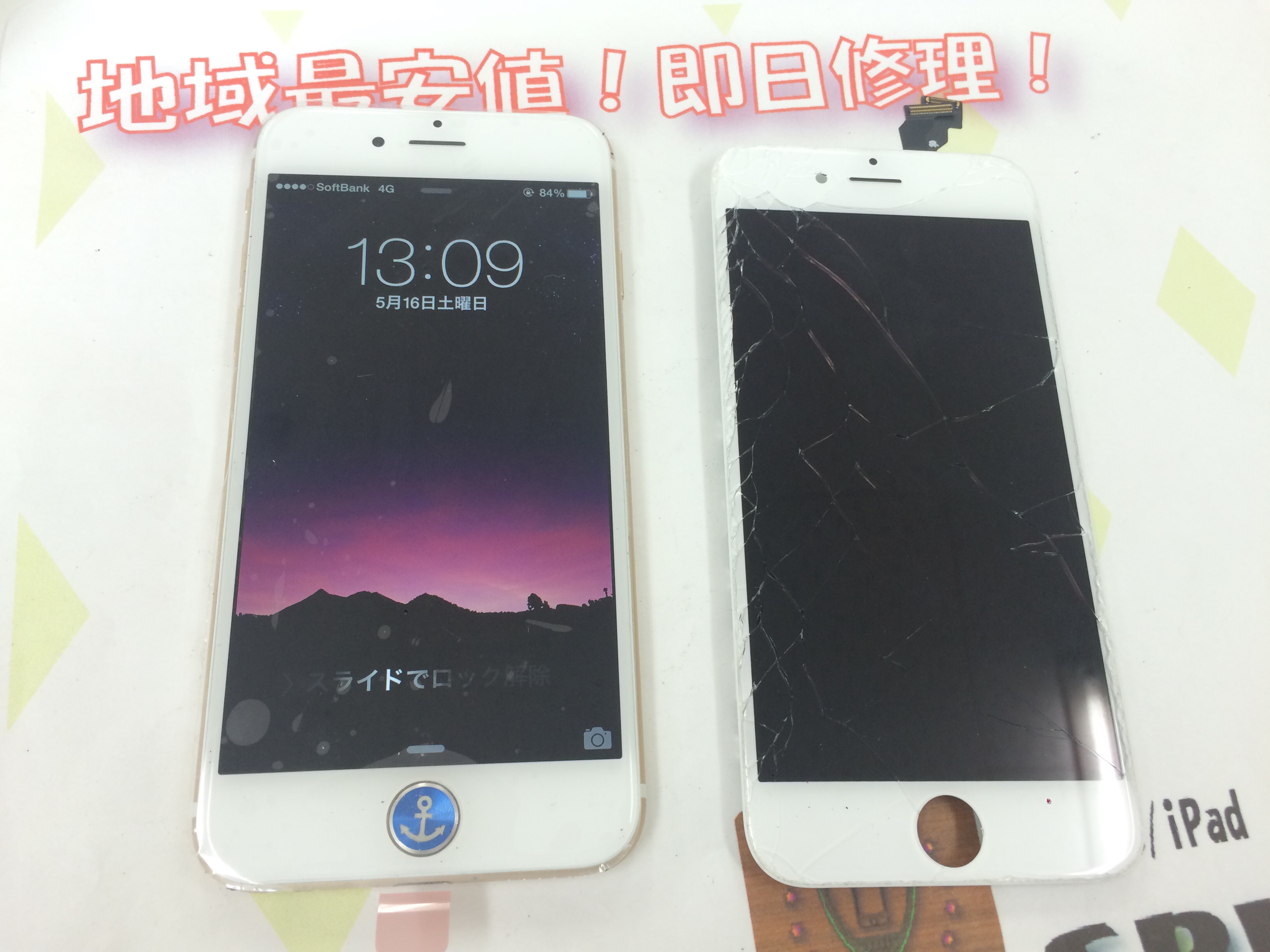 iPhone6 ガラス割れ、液晶修理 ¥19,300(学割適用)