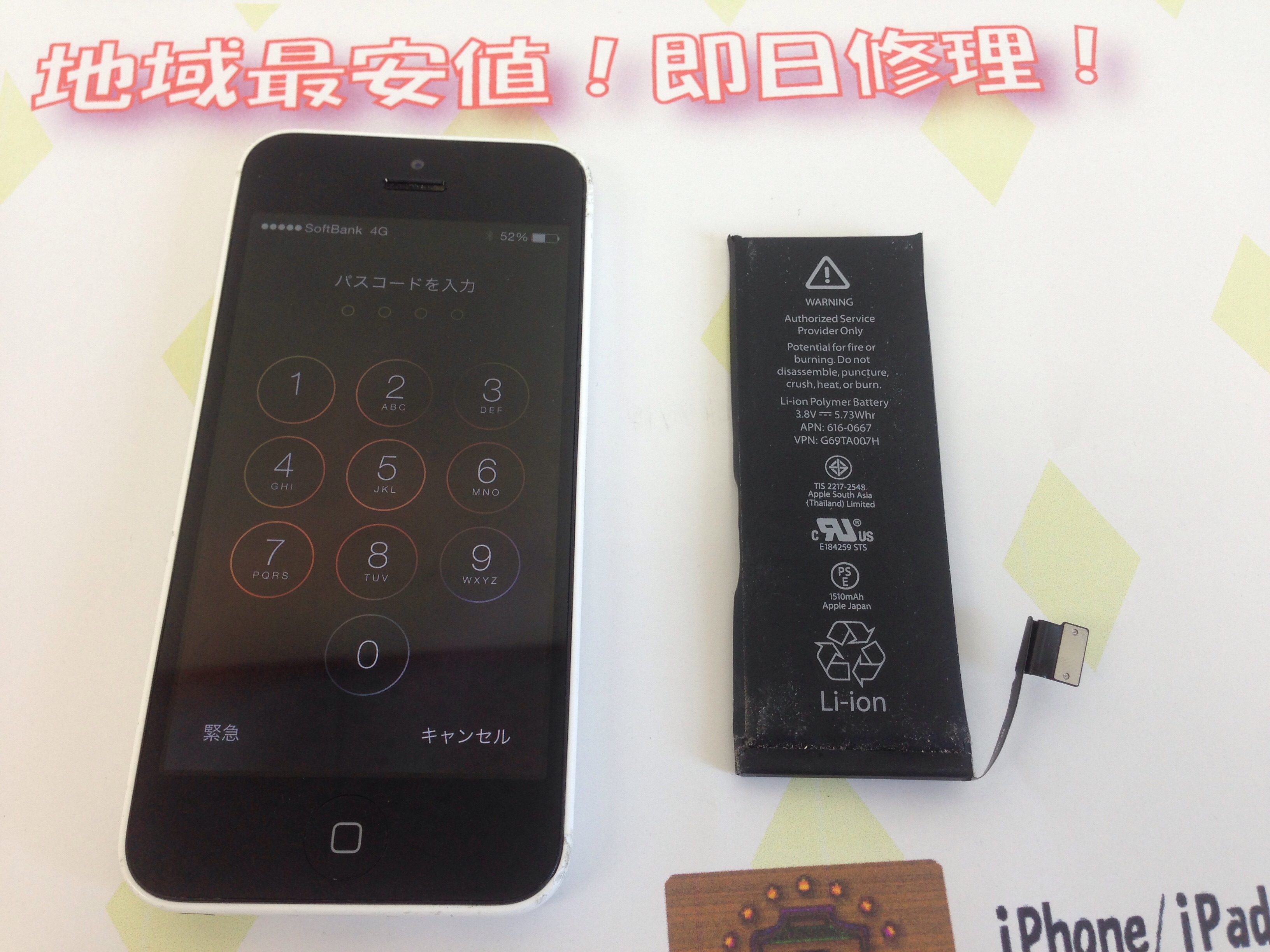 iPhone5c バッテリー交換 ¥6,800