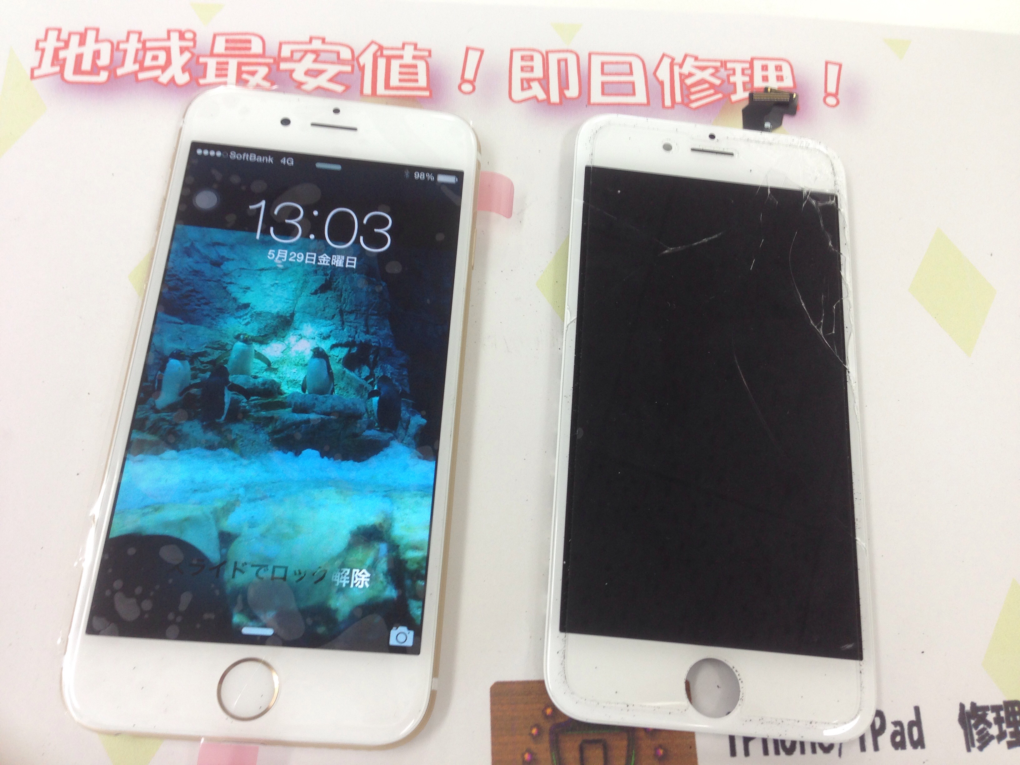 iPhone6 ガラス割れ、液晶修理 ¥19,800