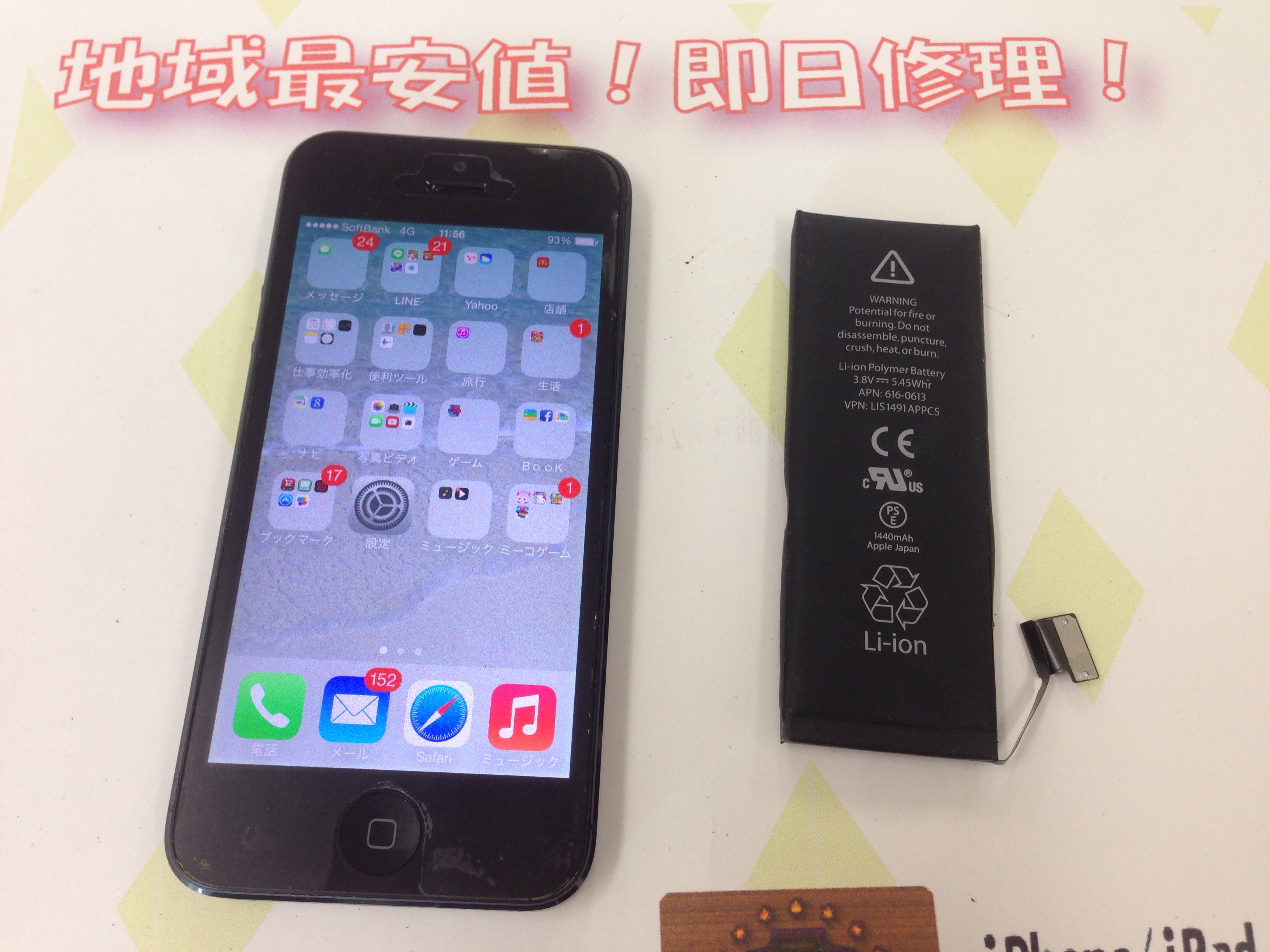 iPhone5 バッテリー交換 ¥5,800