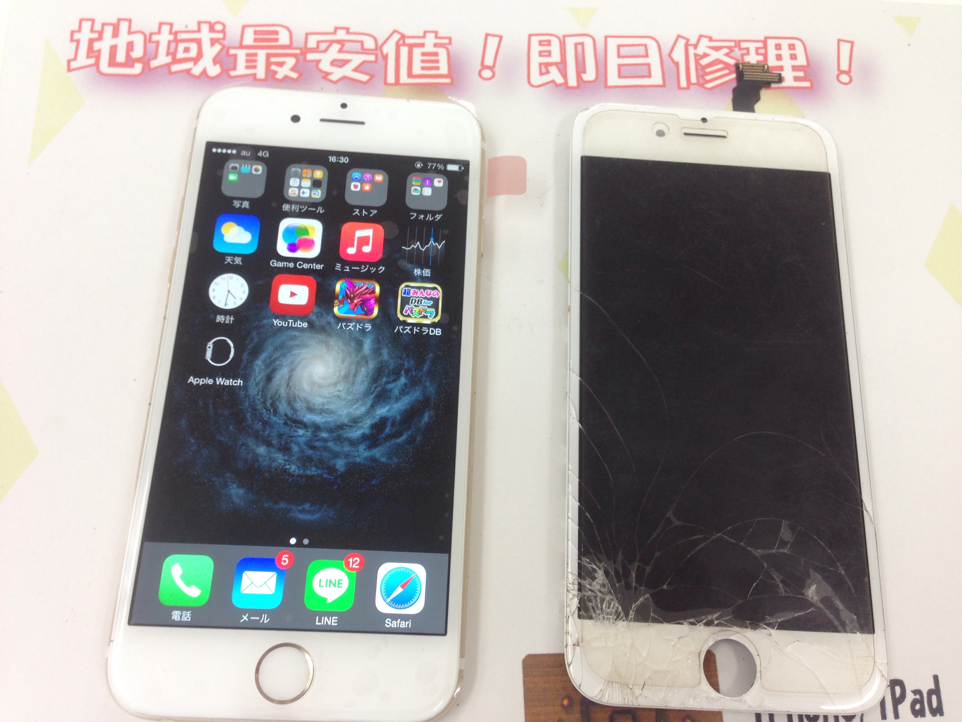 iPhone6 ガラス割れ、液晶修理 ¥19,800