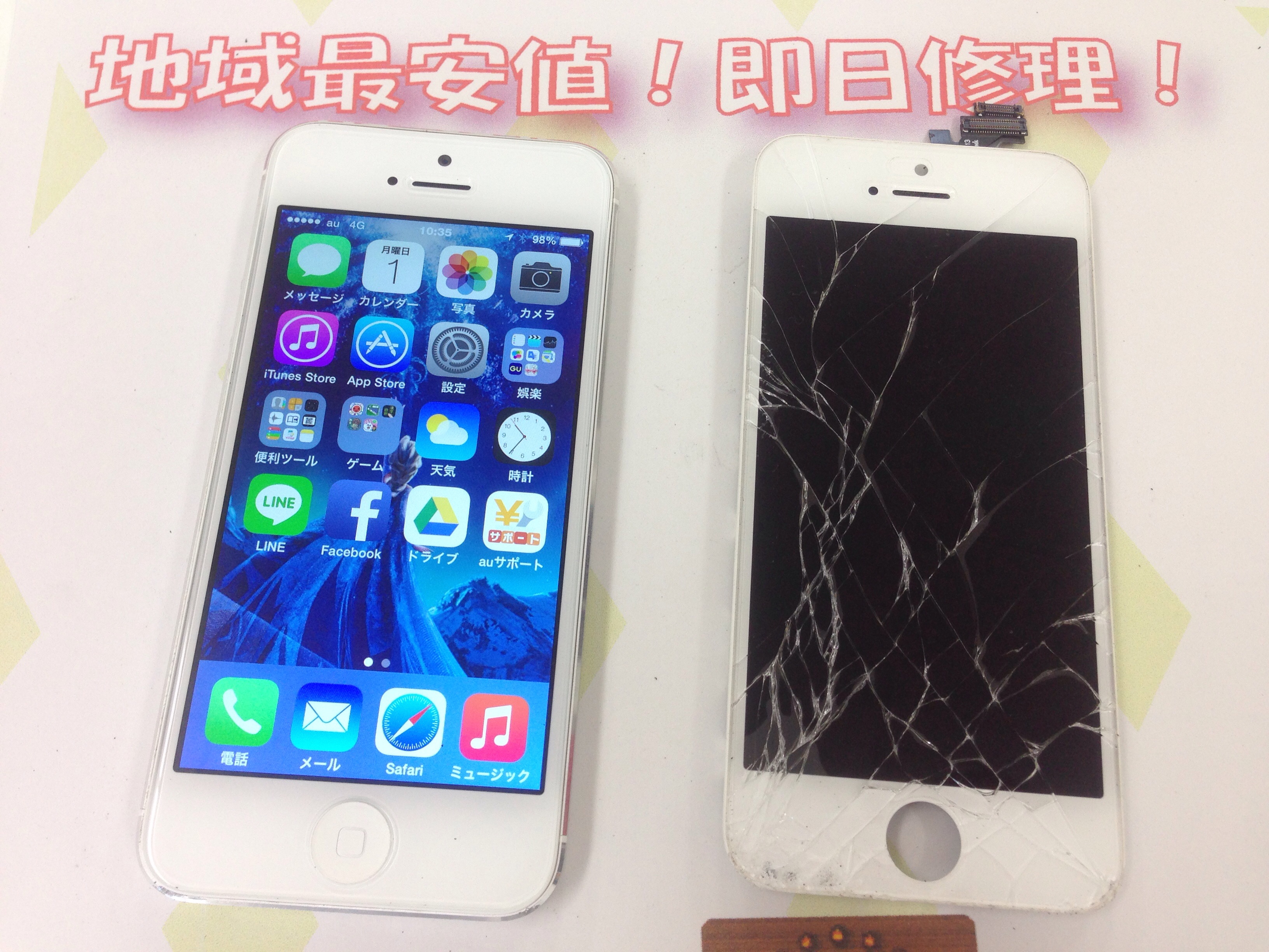 iPhone5 ガラス割れ修理 ¥9,800
