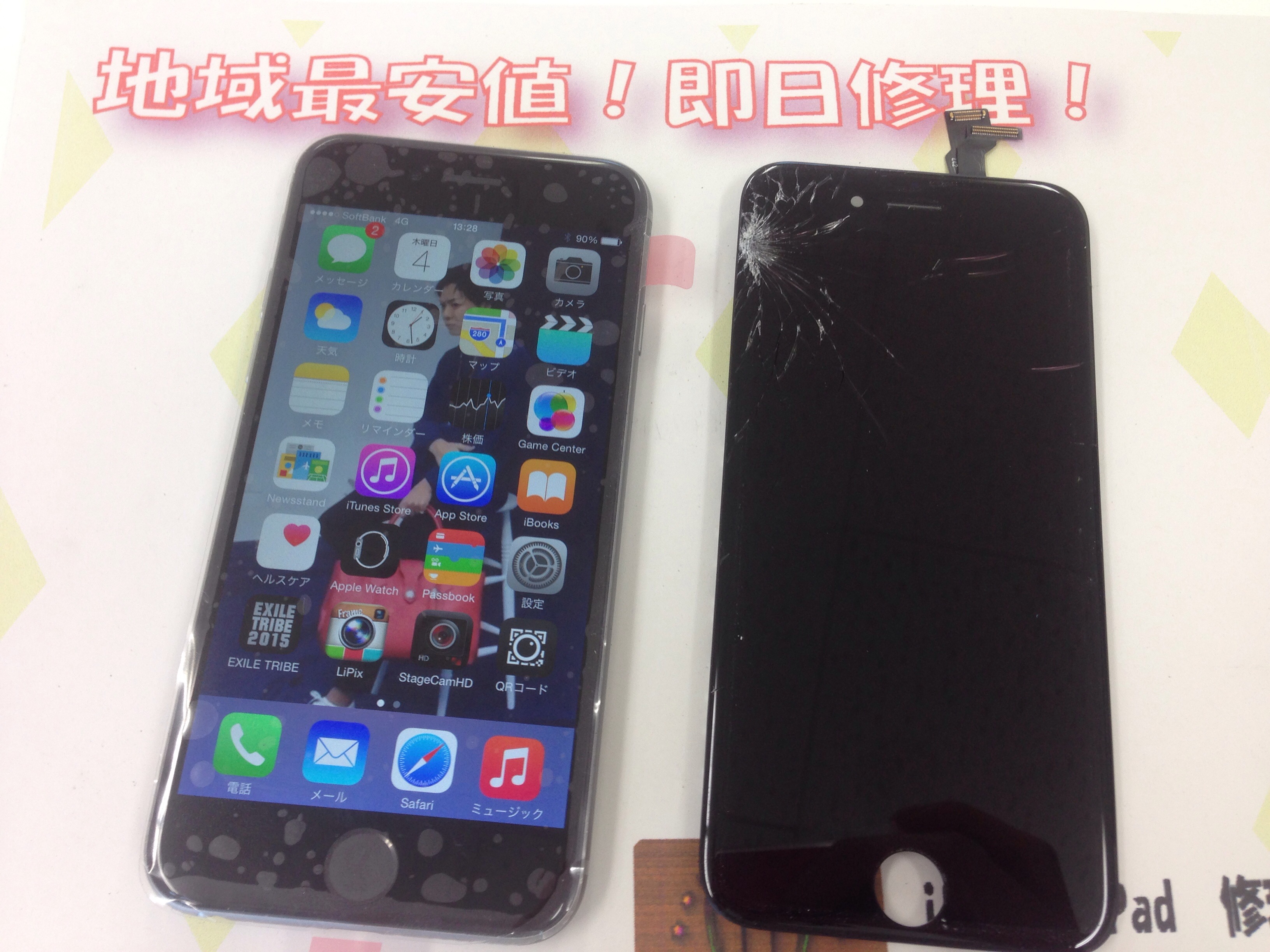 ※iPhone6ガラス割れ修理は在庫の関係上、ご予約の方優先となりますので修理依頼の際はHPよりご予約をお願いいたします。