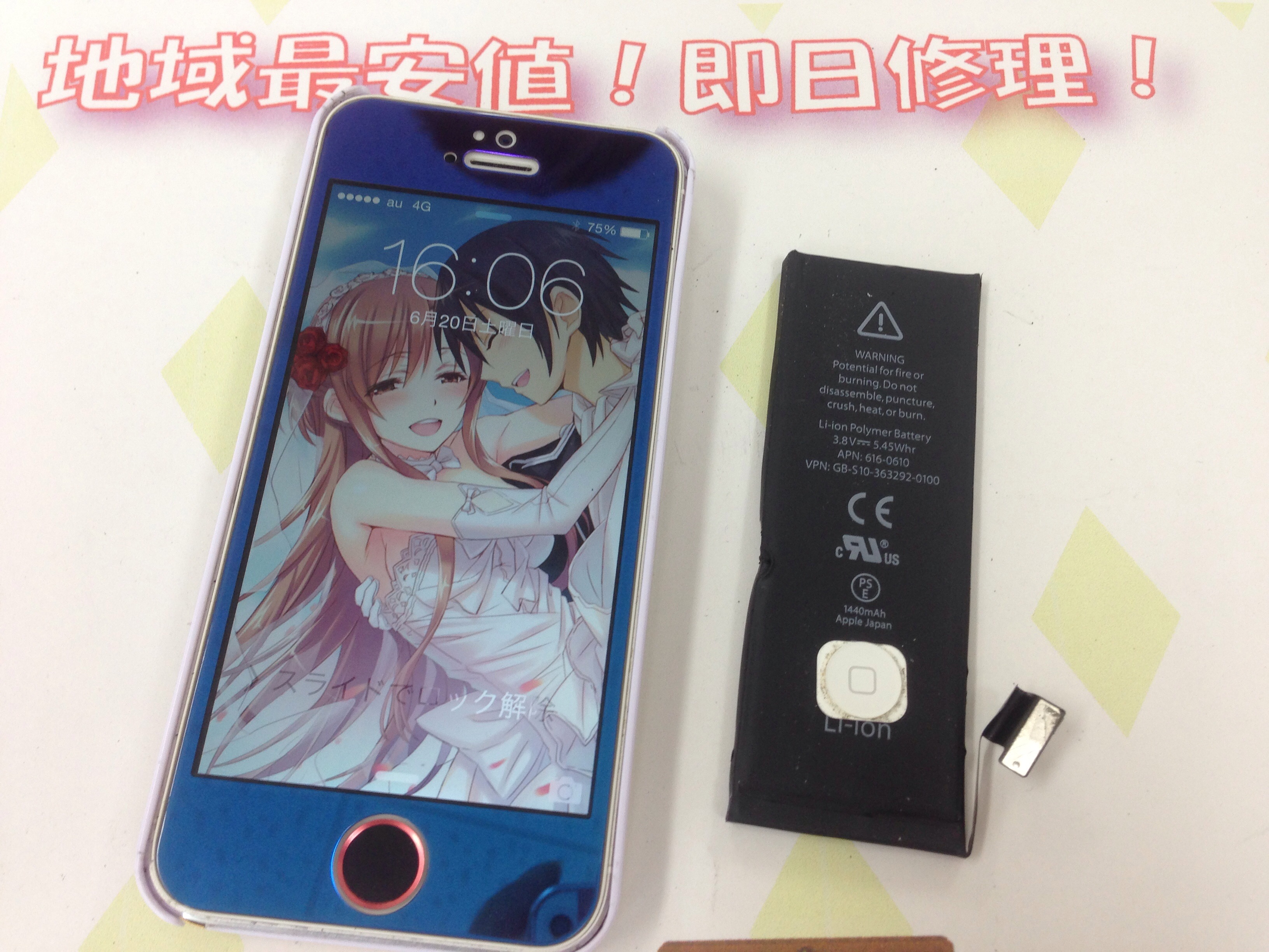 ◆高砂市よりiPhone5 バッテリー交換&ホームボタンカスタム -2015 6/20-
