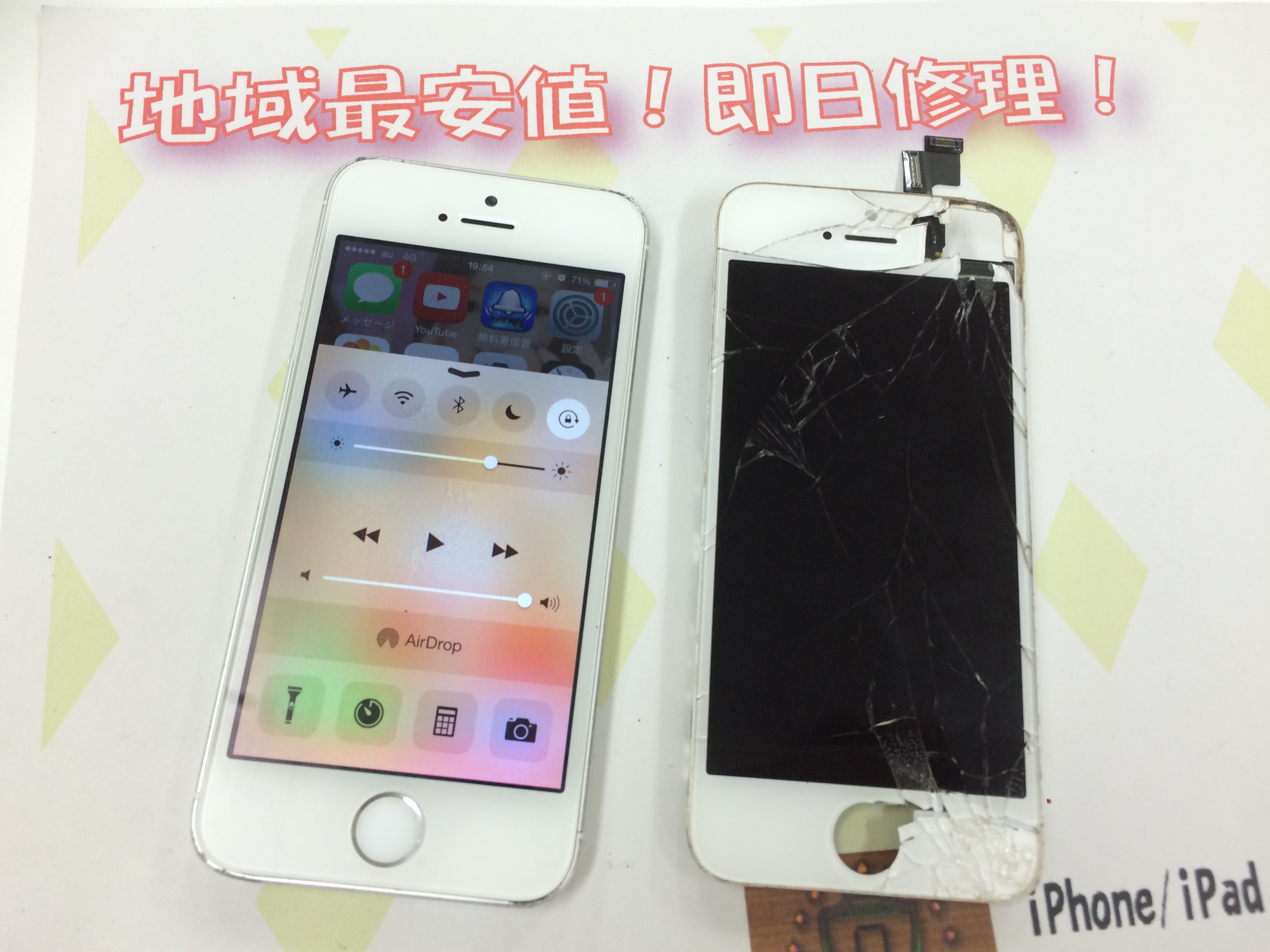 iPhone5s ガラス割れ/液晶修理 ¥12,300(Facebook割適用)