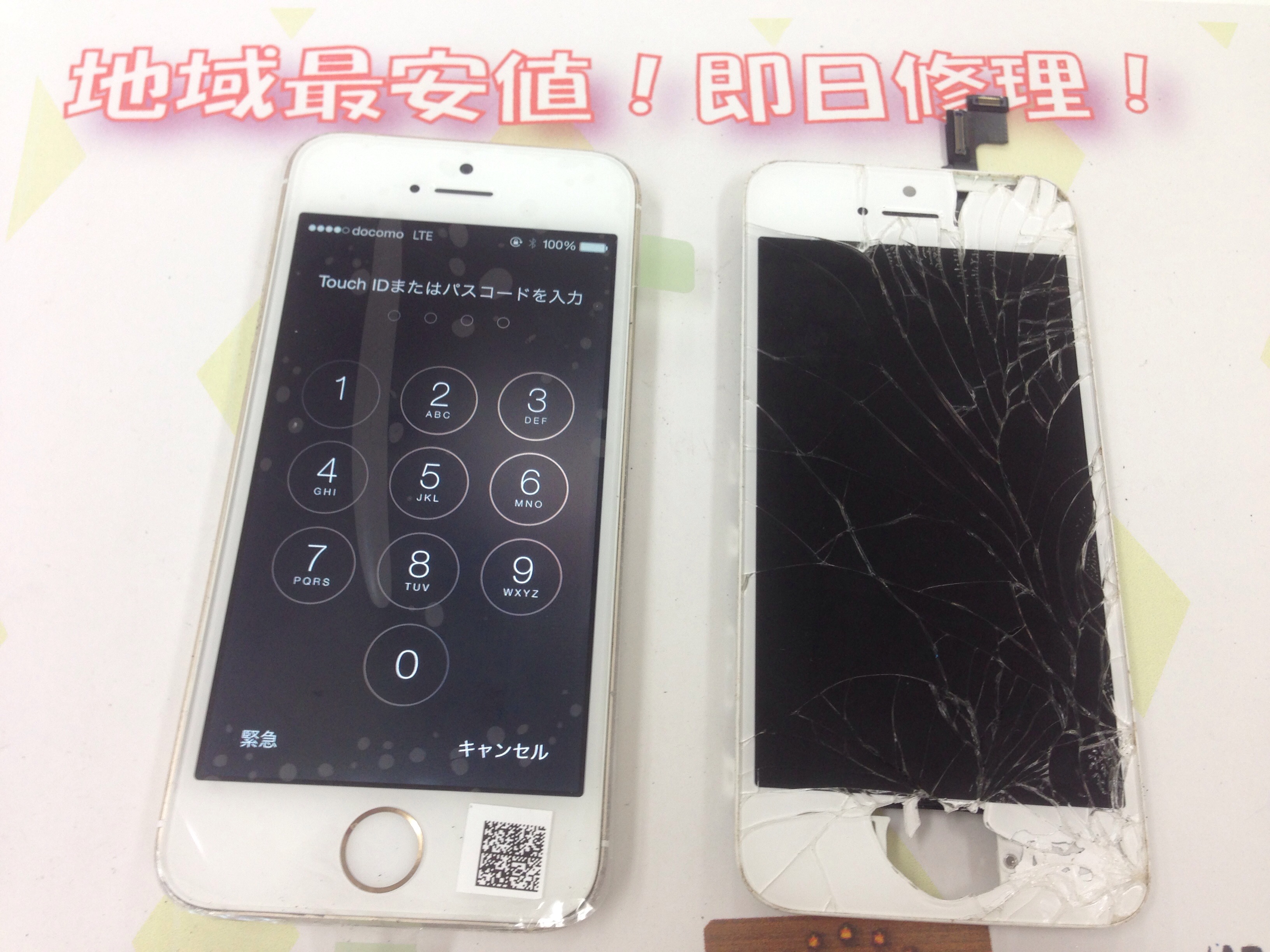 iPhone5s ガラス割れ/液晶修理 ¥12,300(Facebook割適用)