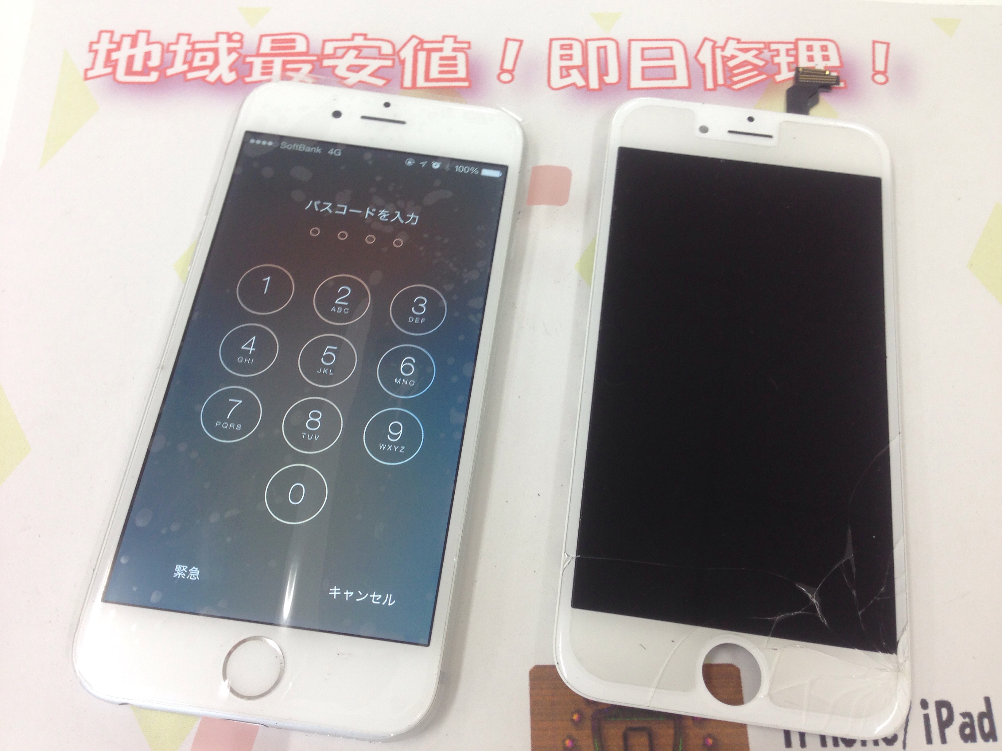 iPhone6 ガラス割れ、液晶修理 ¥19,800