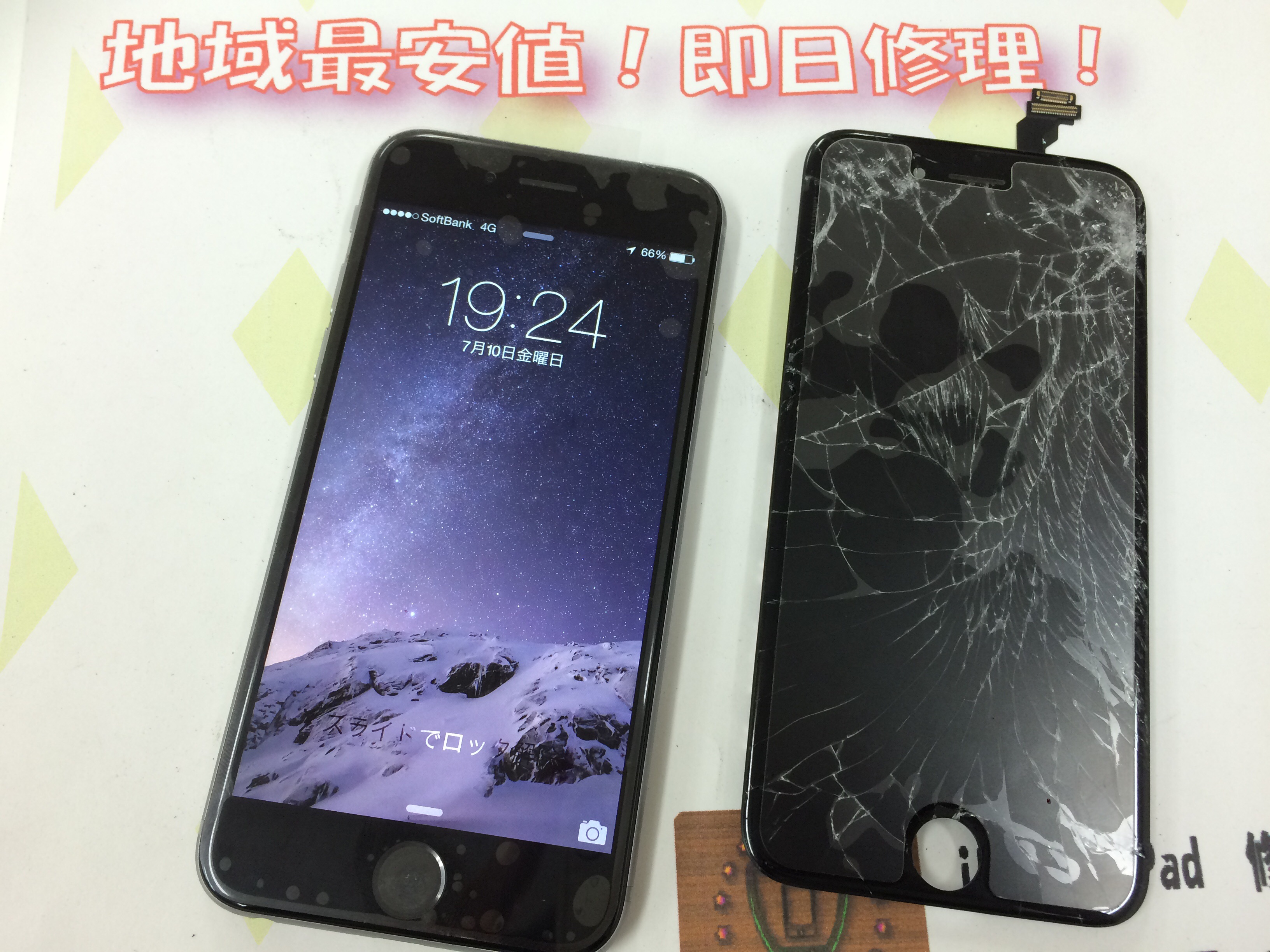 iPhone6 ガラス割れ、液晶修理 ¥19,800
