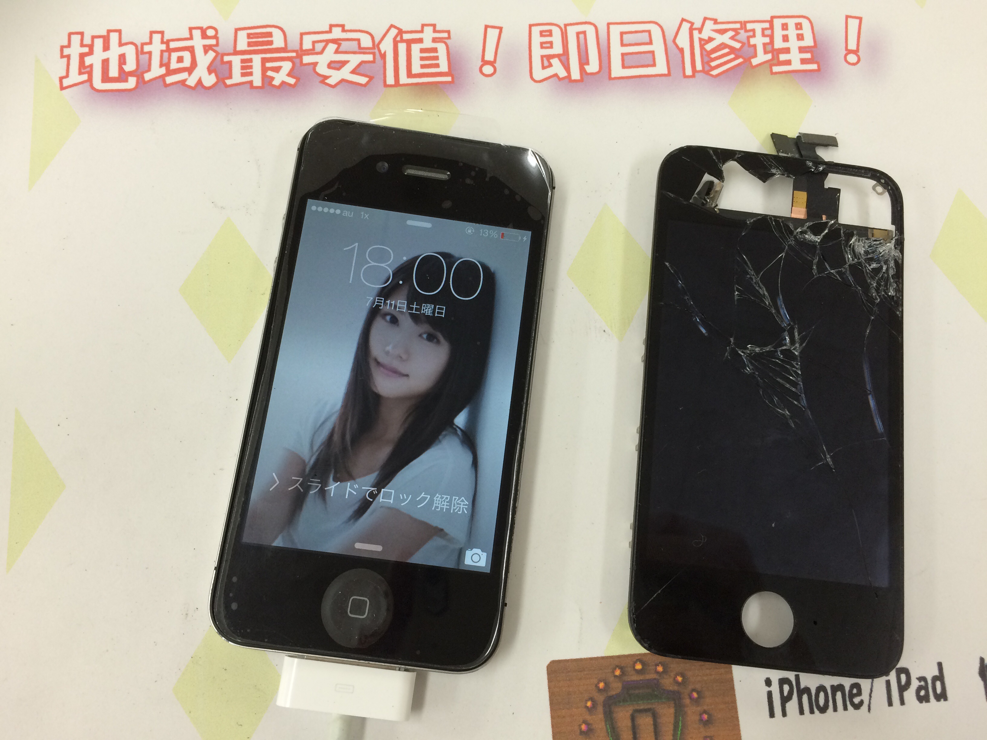 iPhone4s ガラス割れ修理 ¥6,800