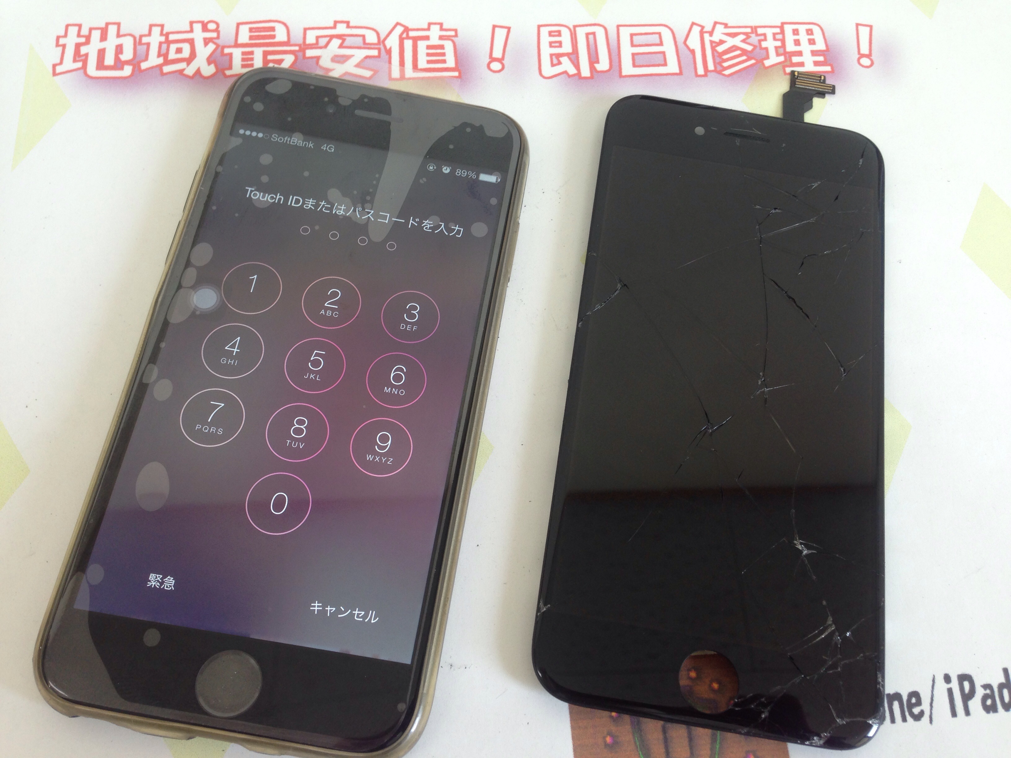 iPhone6 ガラス割れ、液晶修理 ¥19,800
