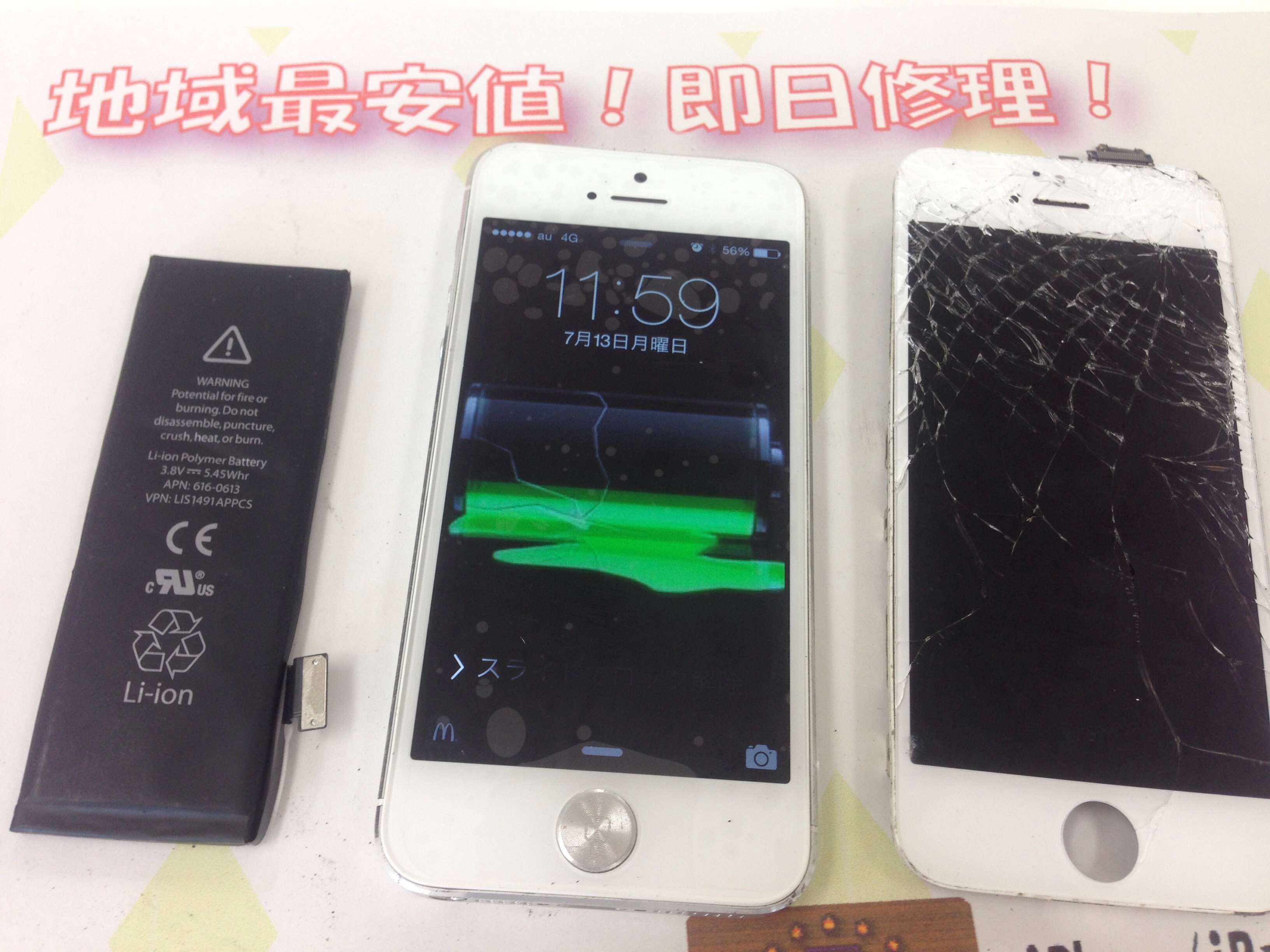 加古川市よりiPhone5 ガラス割れ&バッテリー交換修理をご依頼いただきました。
