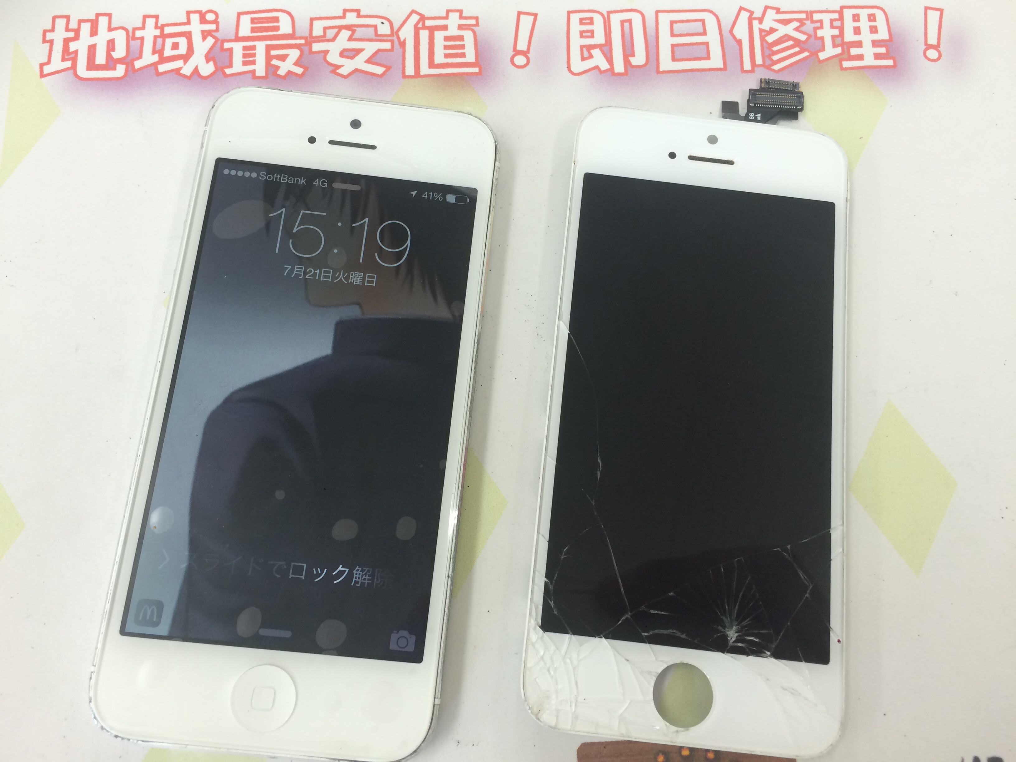 iPhone5 ガラス割れ修理 ¥9,800