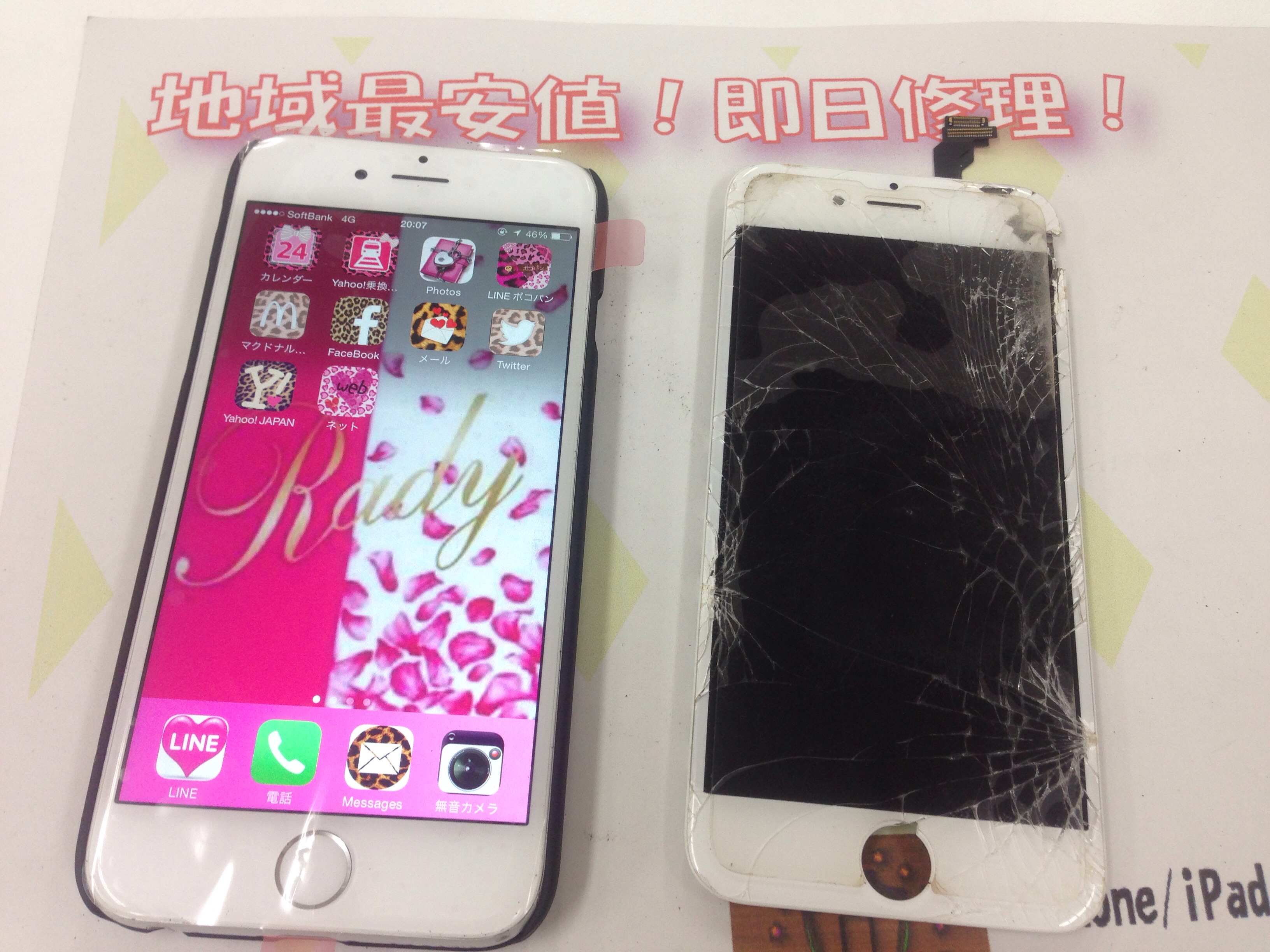 iPhone6 ガラス割れ、液晶修理 ¥19,800