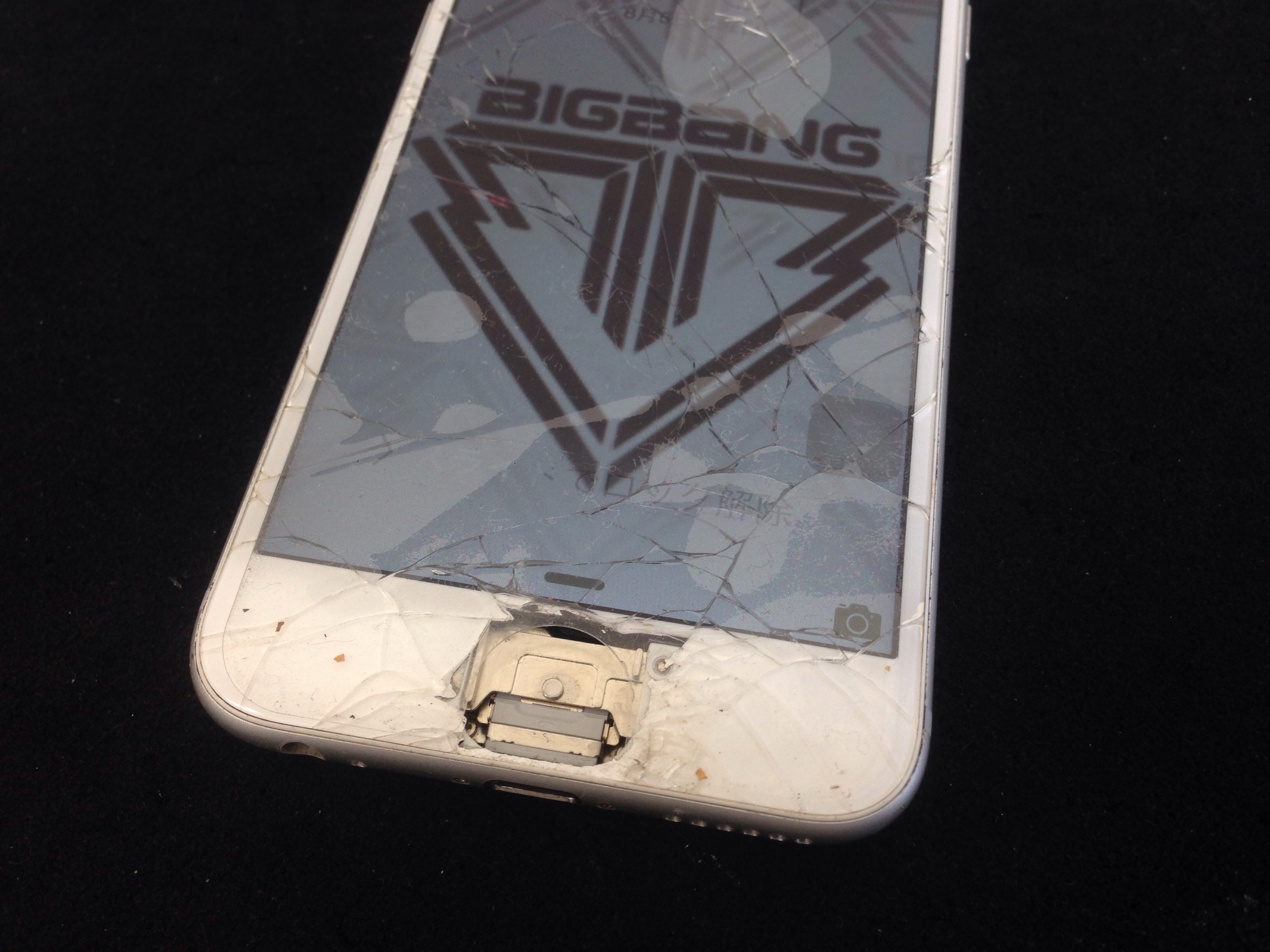 ガラスも激しく割れておりホームボタン自体が千切れてなくなっている状態でした。