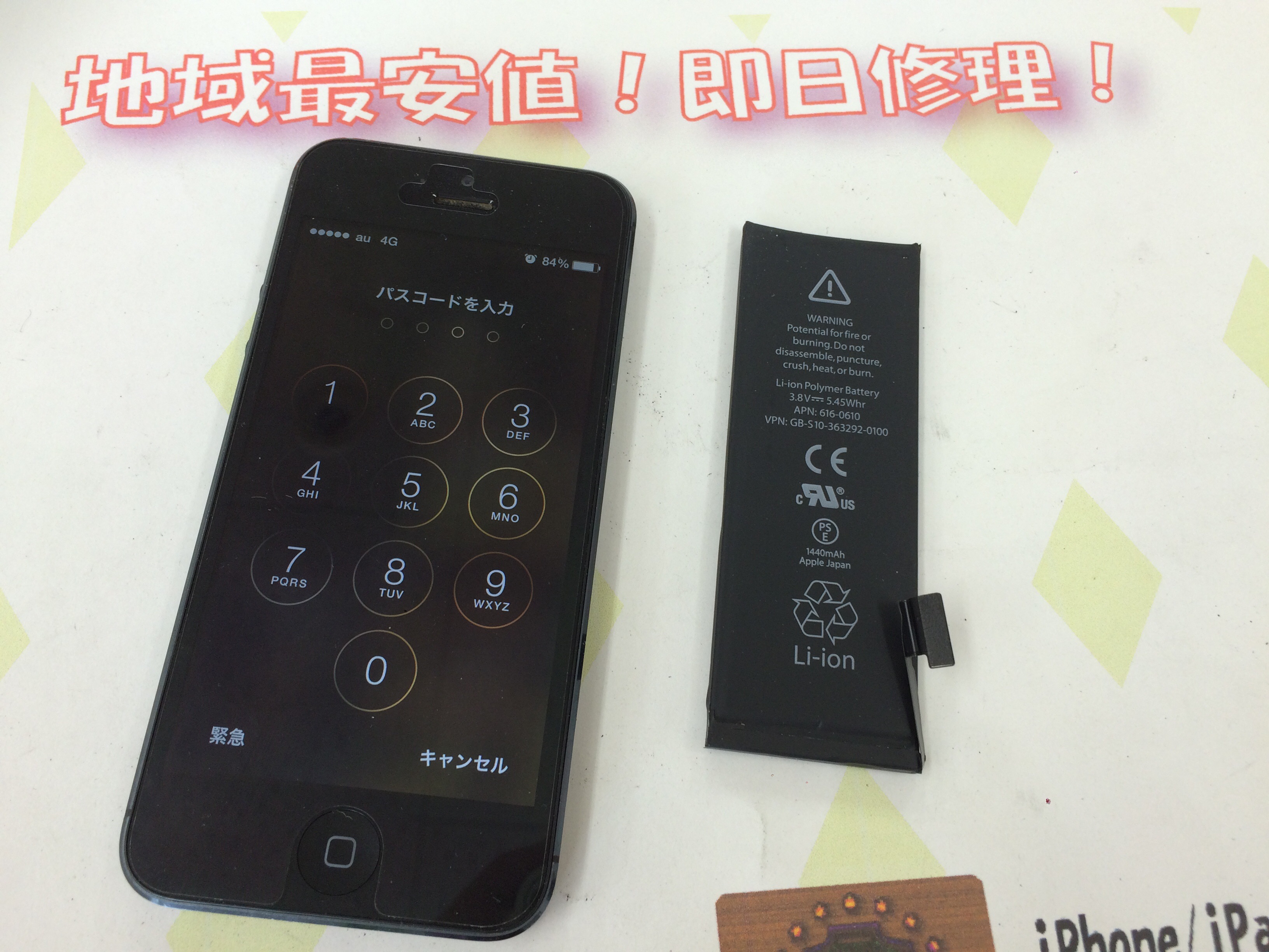 ◆加古川市よりiPhone5 バッテリー交換 -2015 8/9-