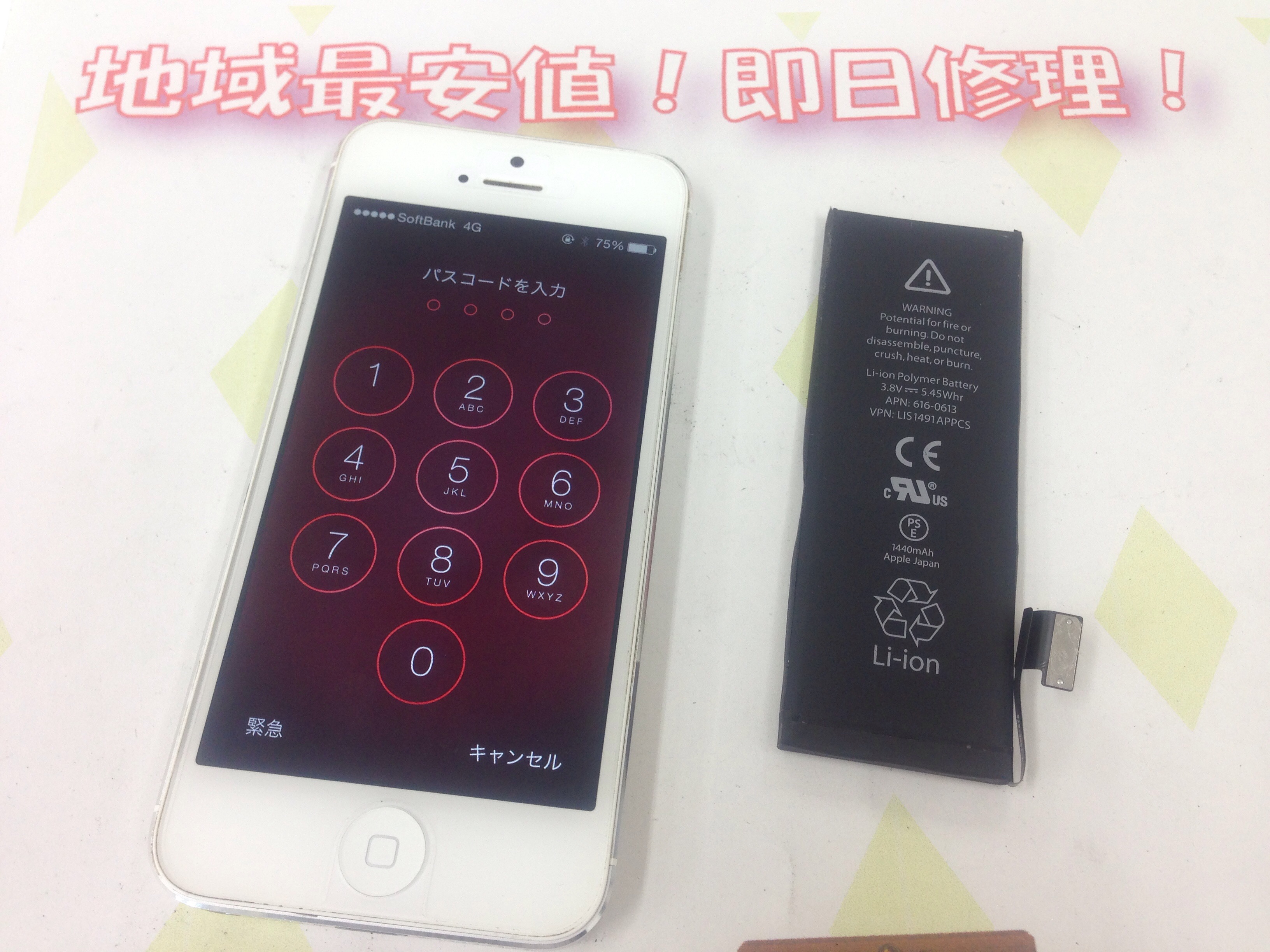 iPhone5 バッテリー交換 ¥5,800