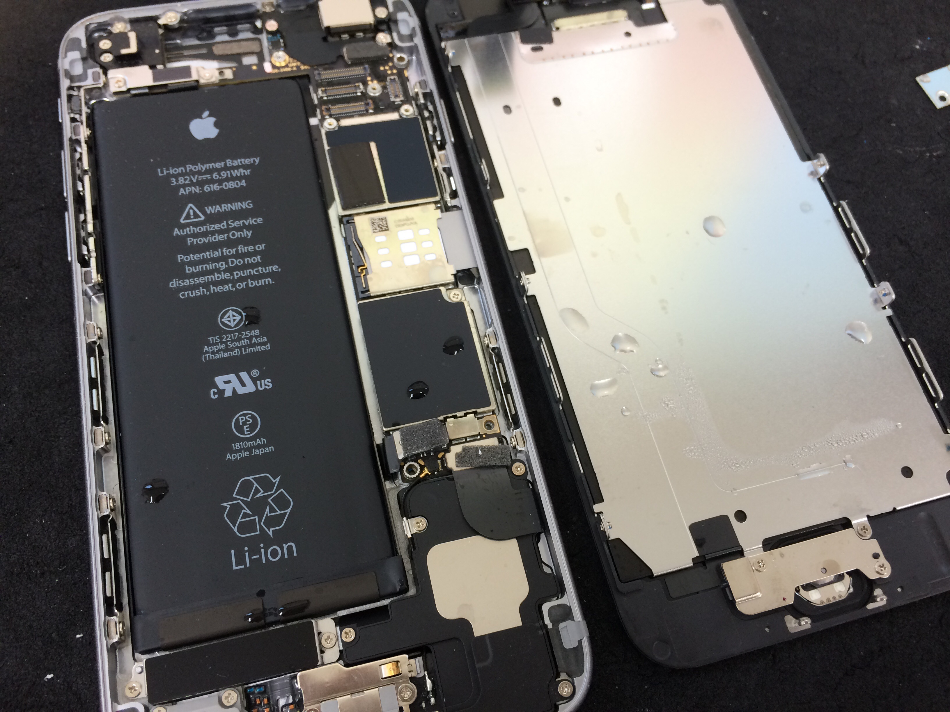 iPhone6 水没修理→基板洗浄、バッテリー交換により復旧 ¥8,800