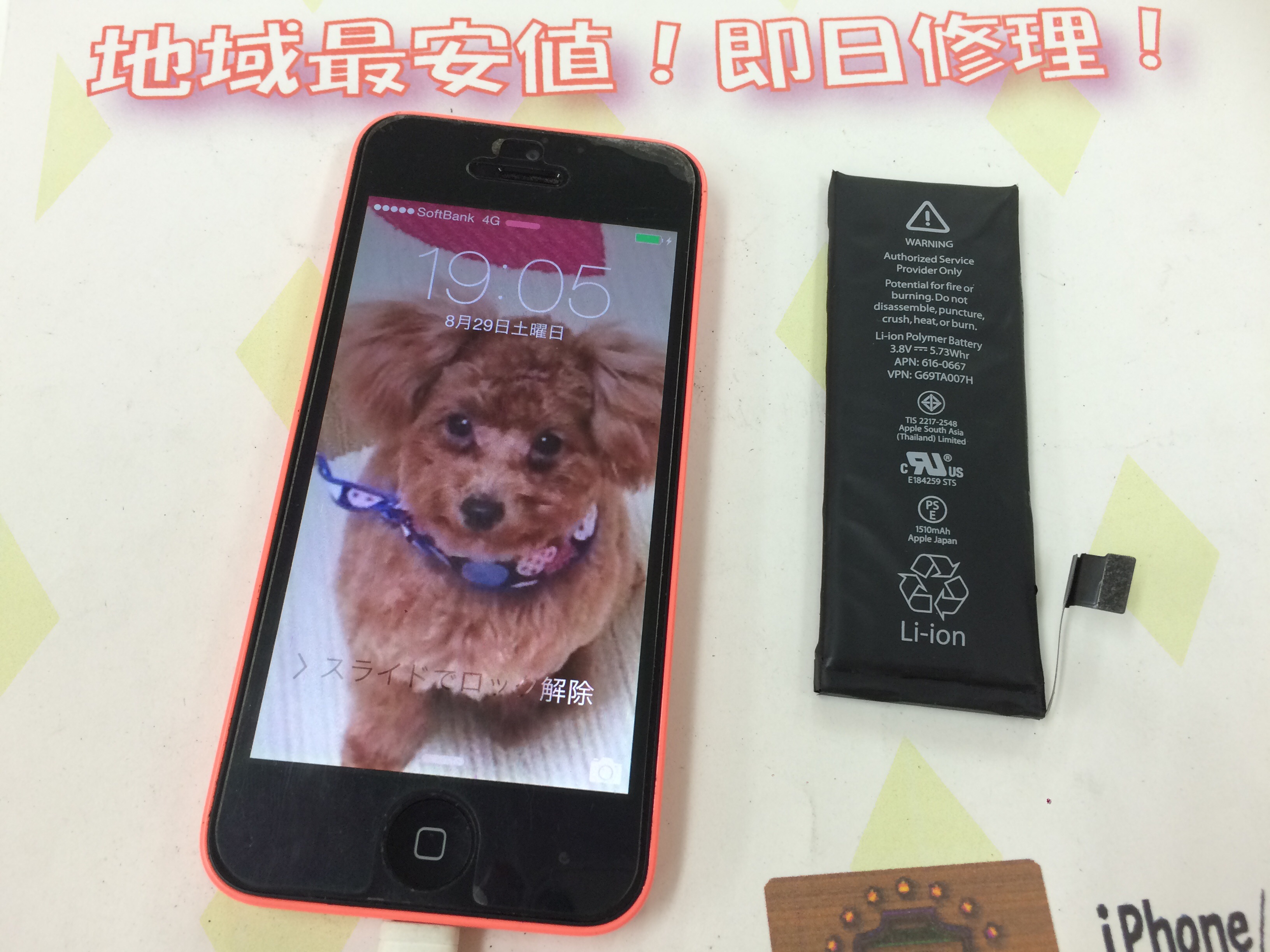 加古川市よりiPhone5c バッテリー交換をご依頼いただきました。