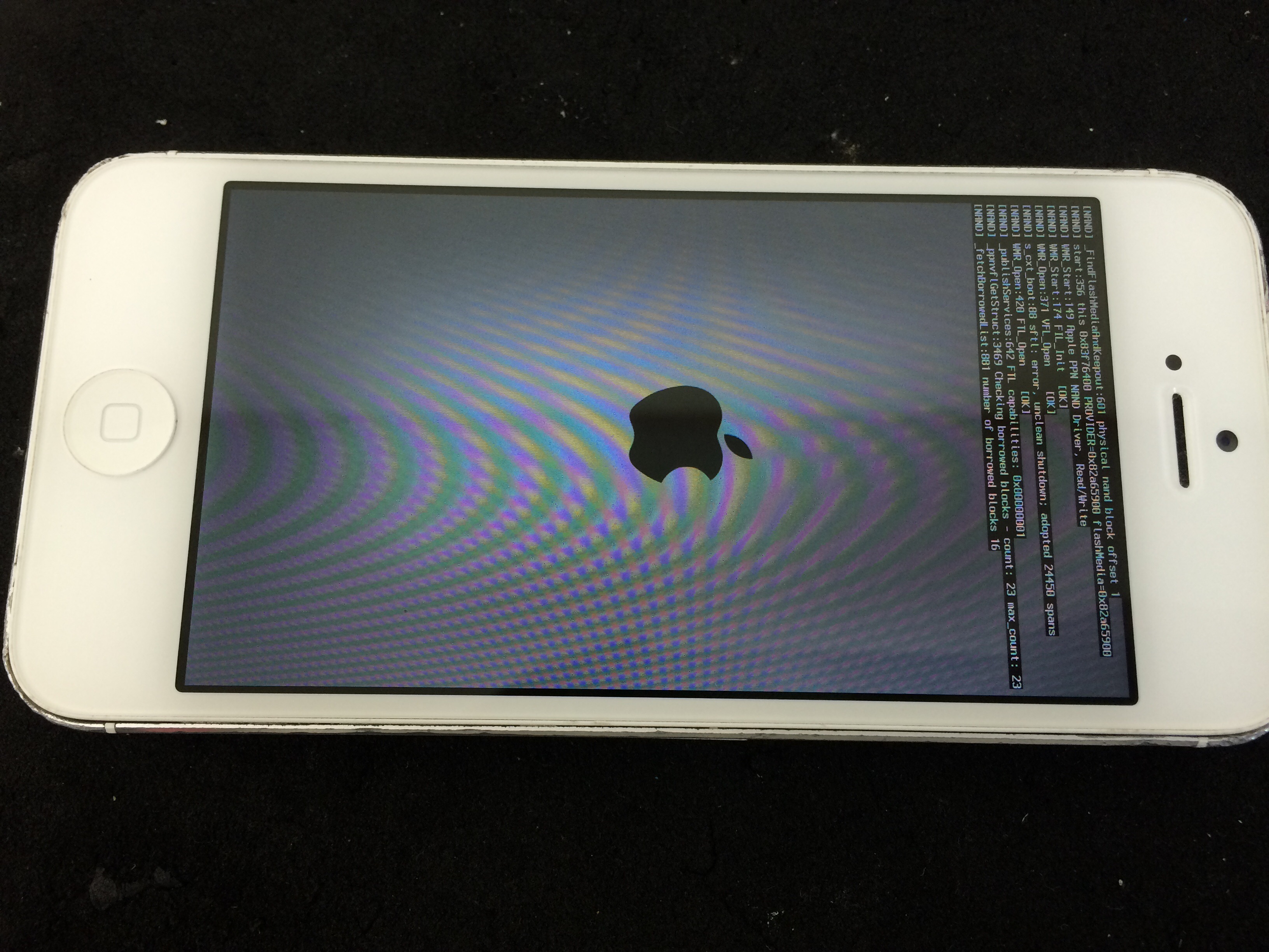NANDエラーとは画像のようにiPhoneの画面上部に英語や数字などの文字が表示され起動出来なくなる珍しい故障です。