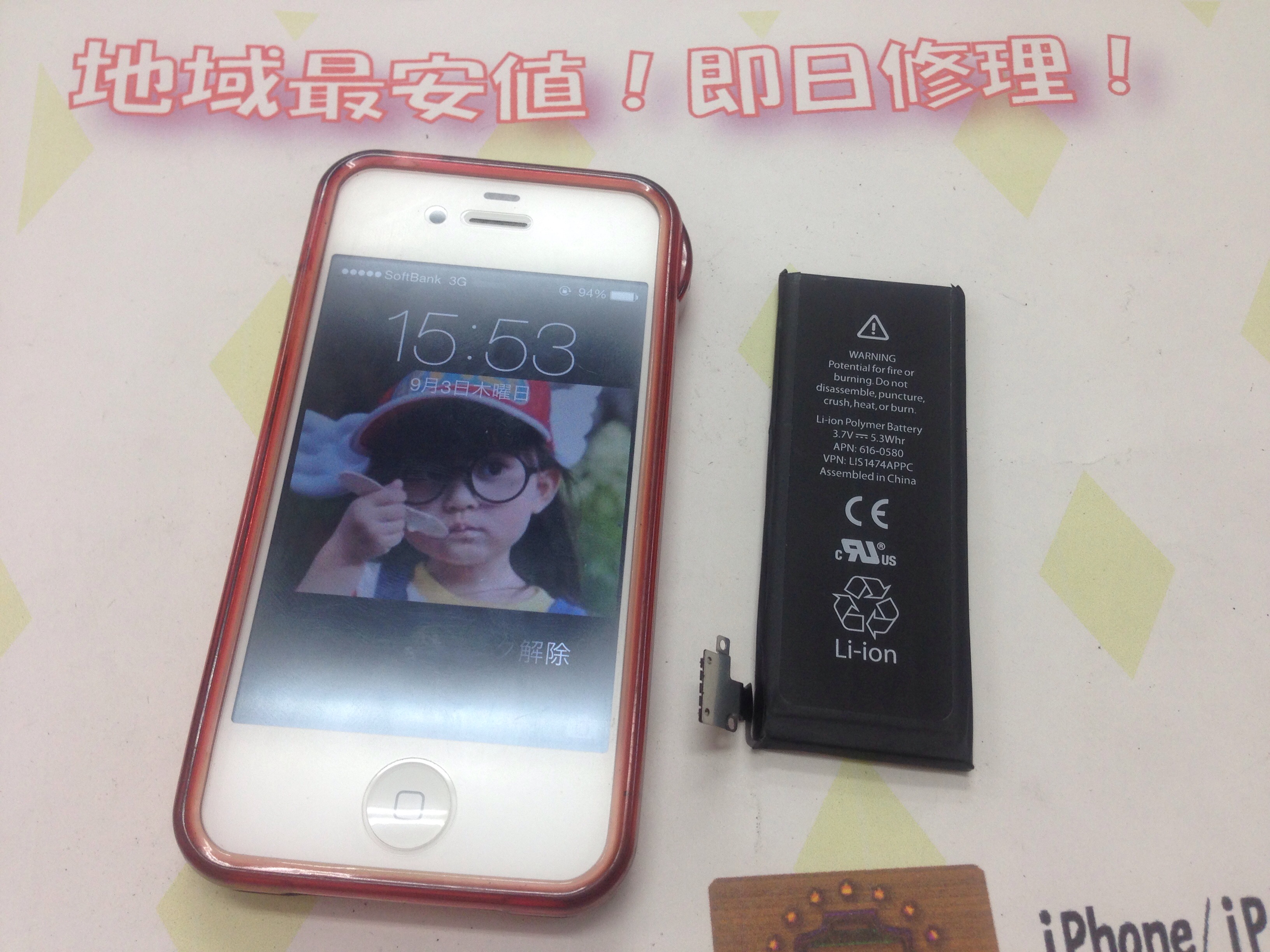 iPhone4s バッテリー交換 ¥5,800