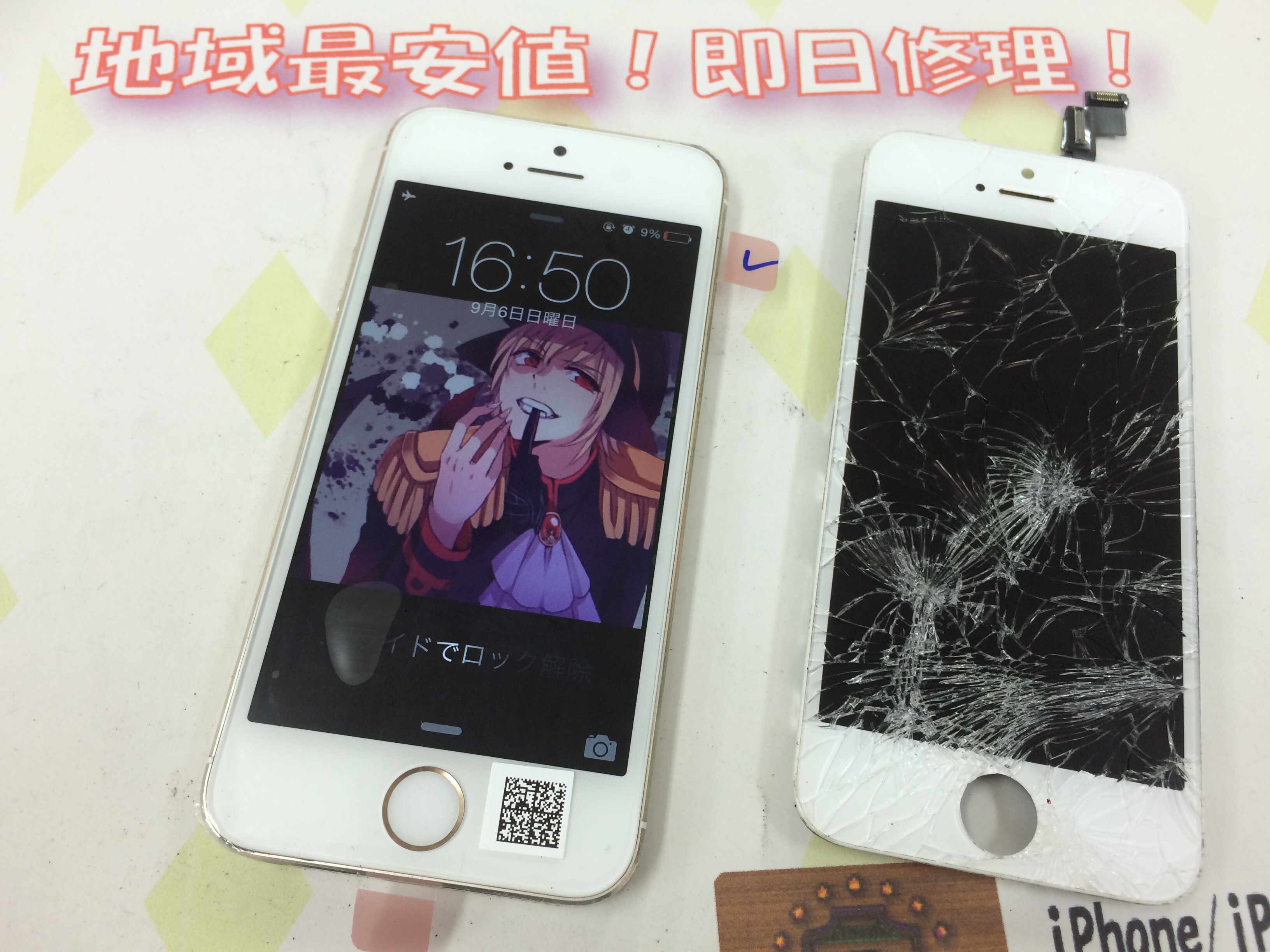 明石市大久保よりiPhone5s ガラス割れ修理をご依頼いただきました。