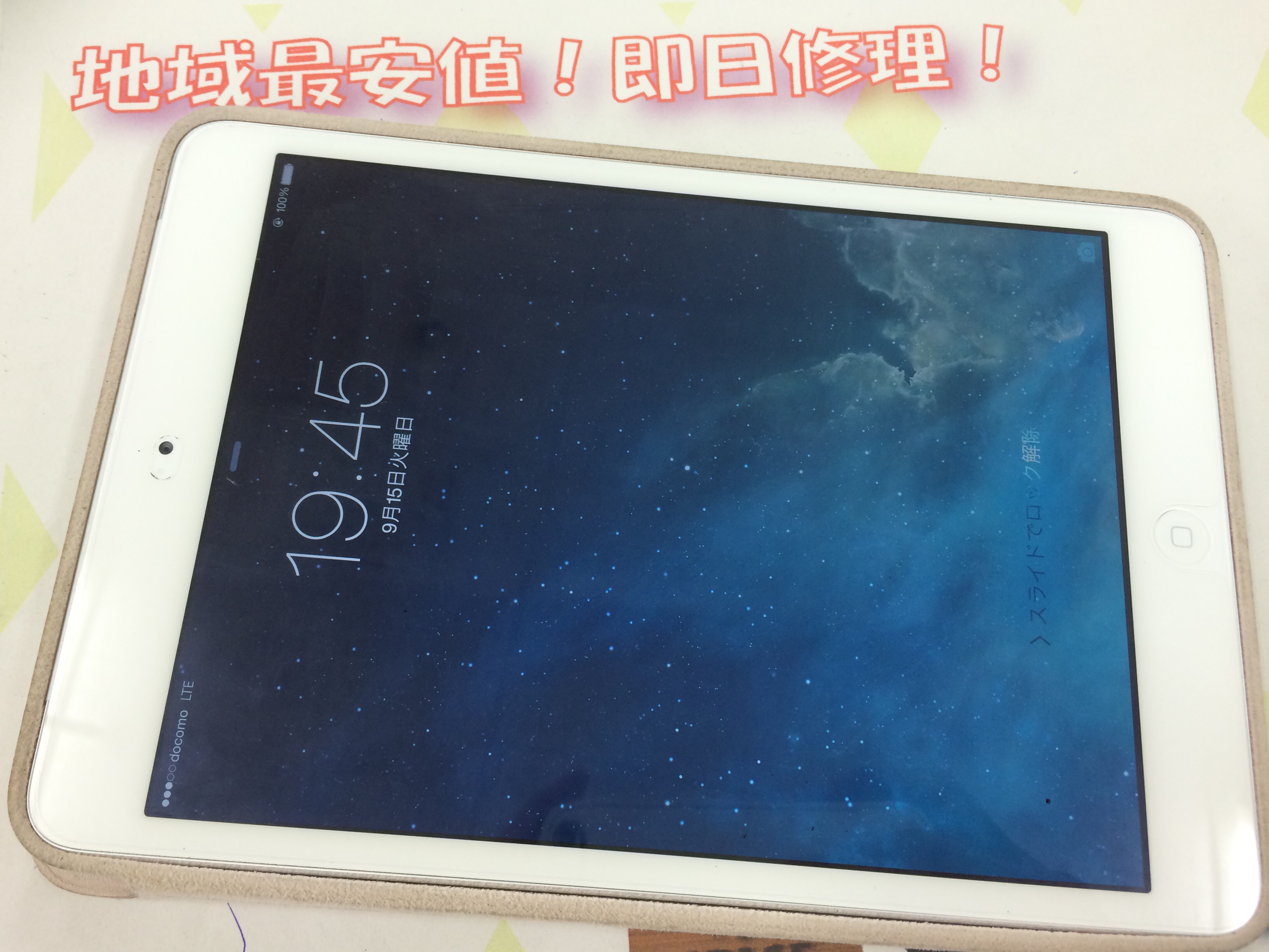 加古川市よりiPad mini2世代のホームボタン陥没修理をご依頼頂きました。