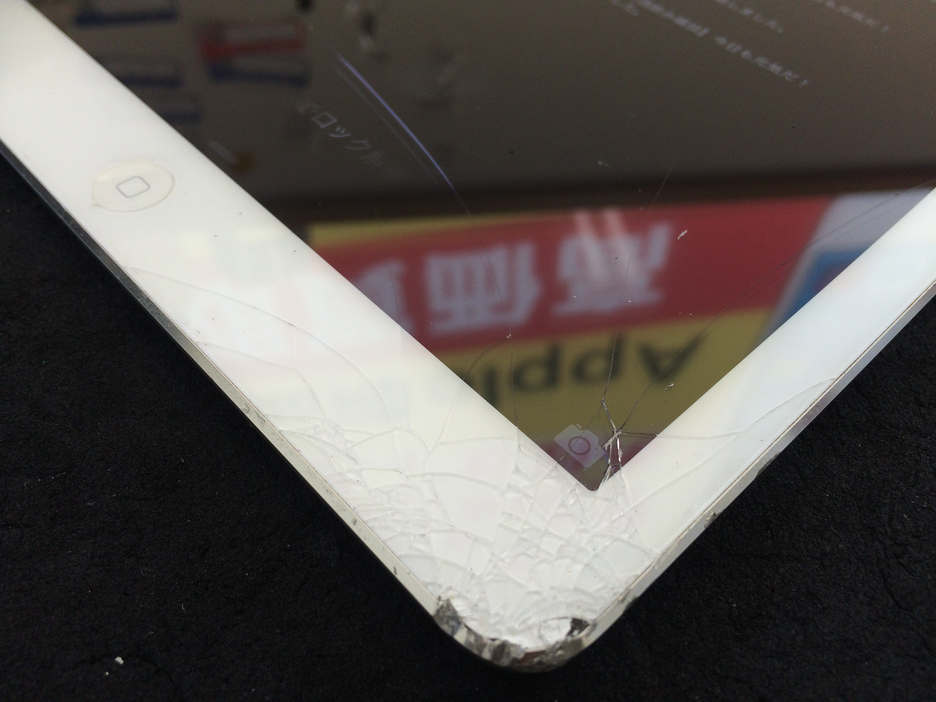 iPadは落下させてしまうと高確率でガラスや液晶が割れてしまいます。