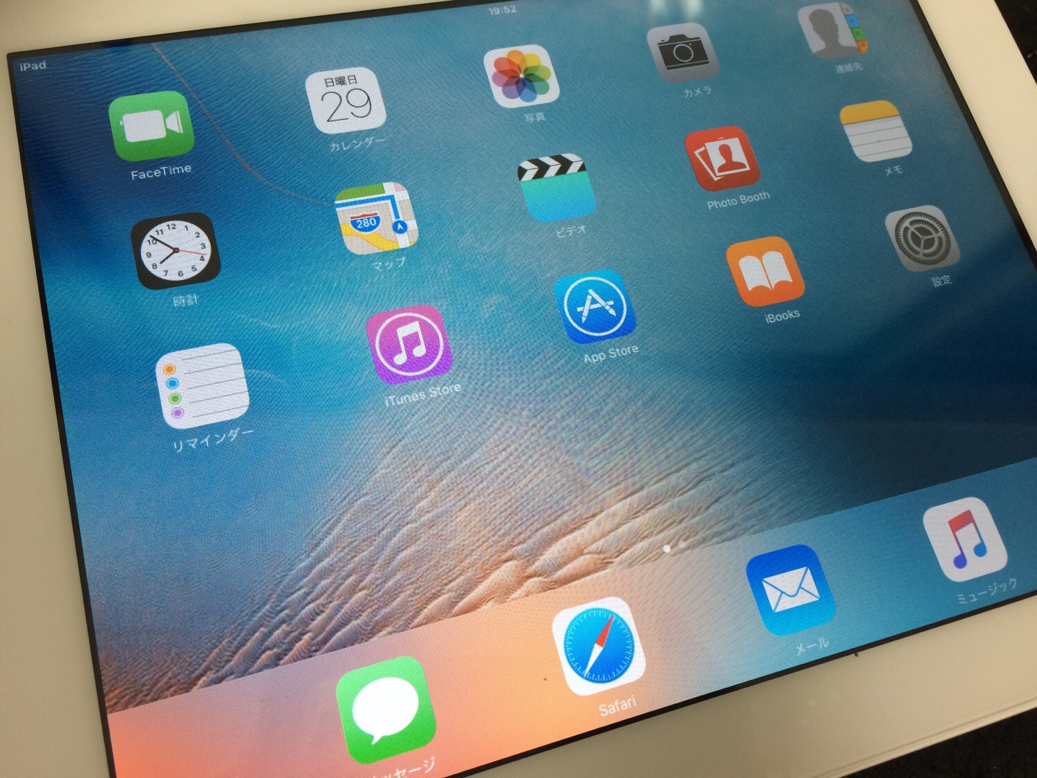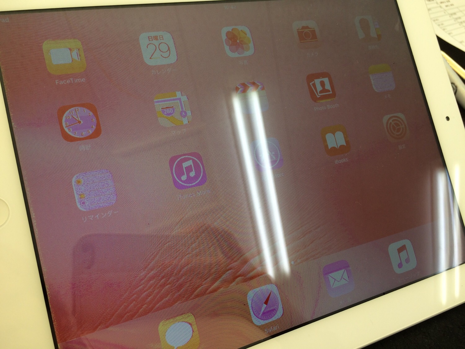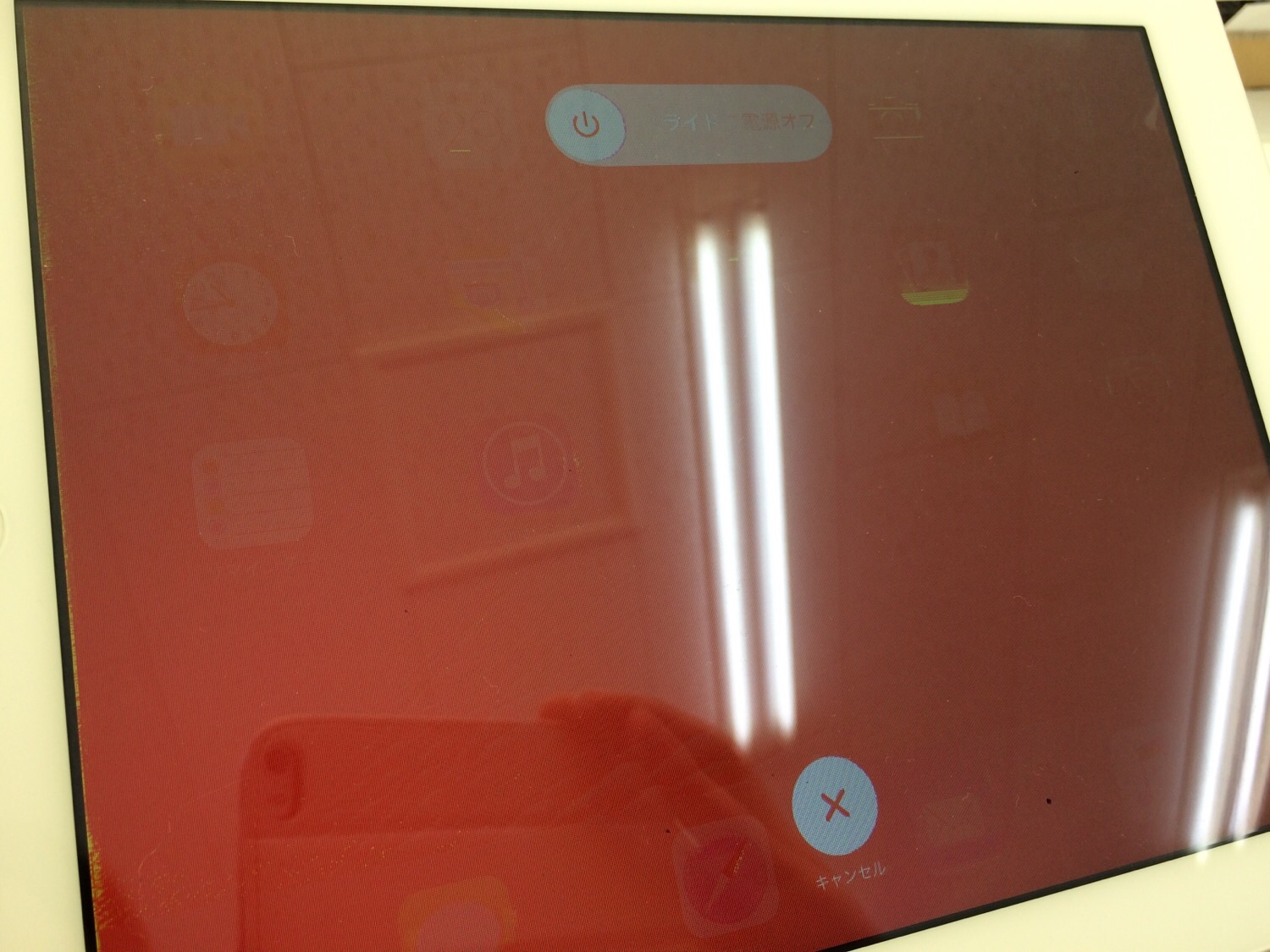 iPad2はこのように液晶の色が滲んだようにおかしくなってしまうことがございます。