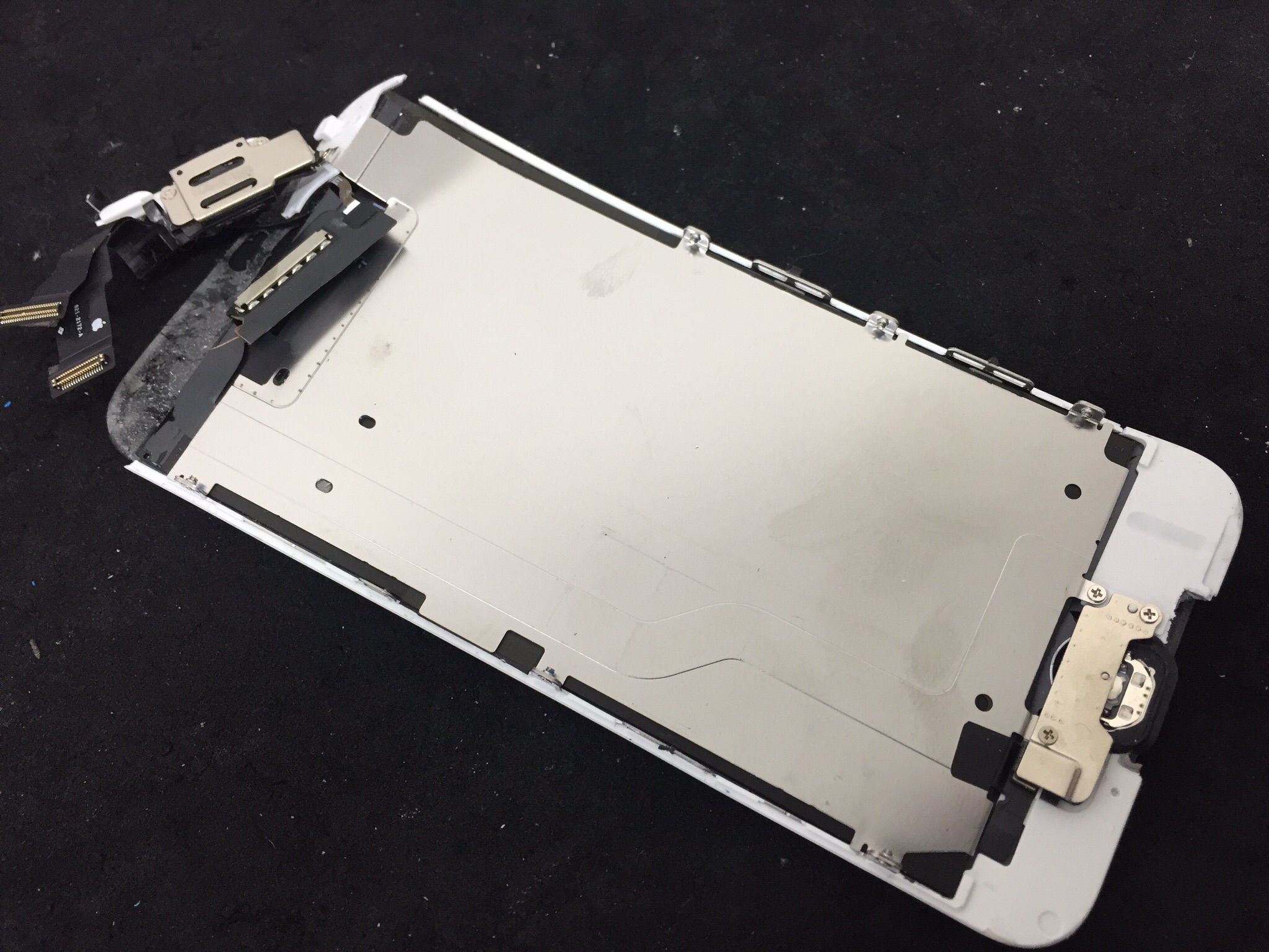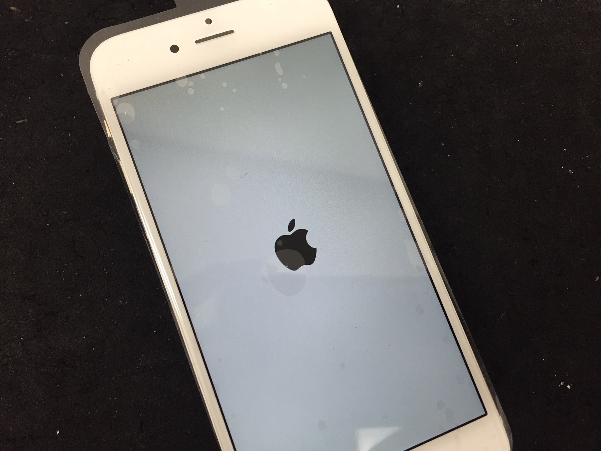 液晶パネルを仮付けの状態で電源を入れるとリンゴマークが表示され無事に起動しました。