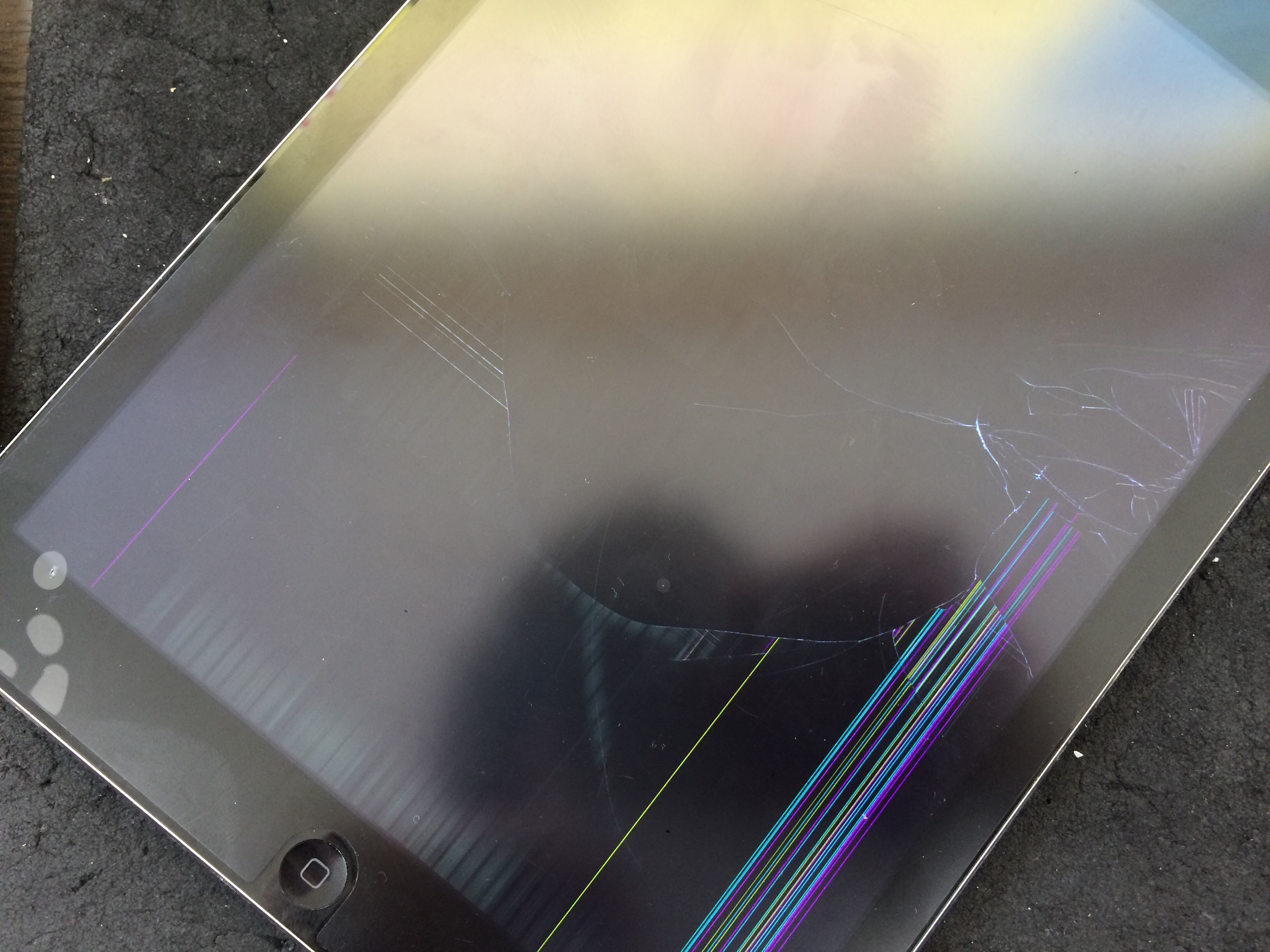 iPadを踏んでしまい幸いガラスは割れなかったものの液晶パネルが液漏れを起こしてしまい表示がおかしくなっておりました。