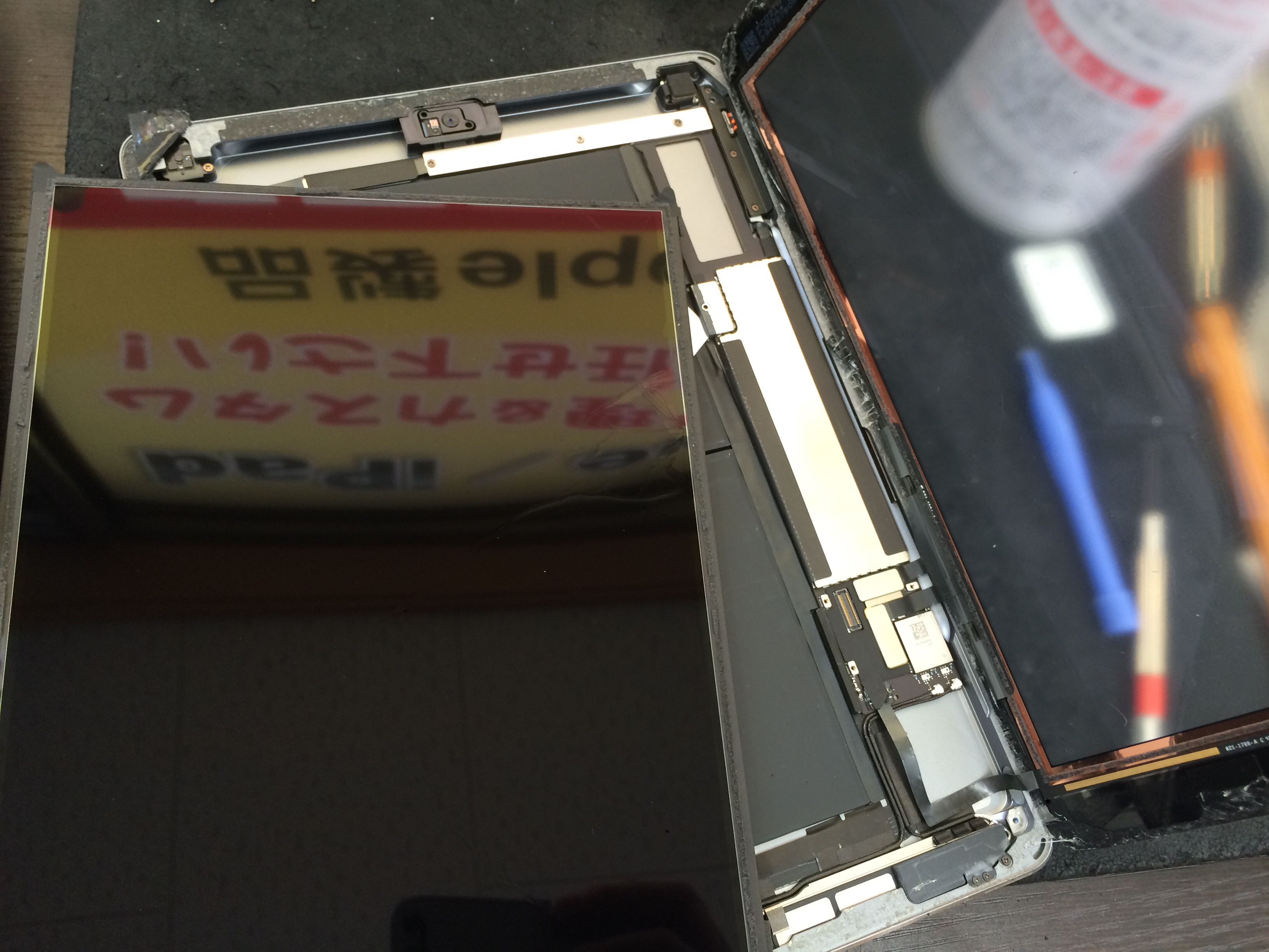 iPhoneと違いiPadはガラス面と液晶パネルは別々のパーツになりますので今回は液晶パネルのみ交換で修理が可能です。
