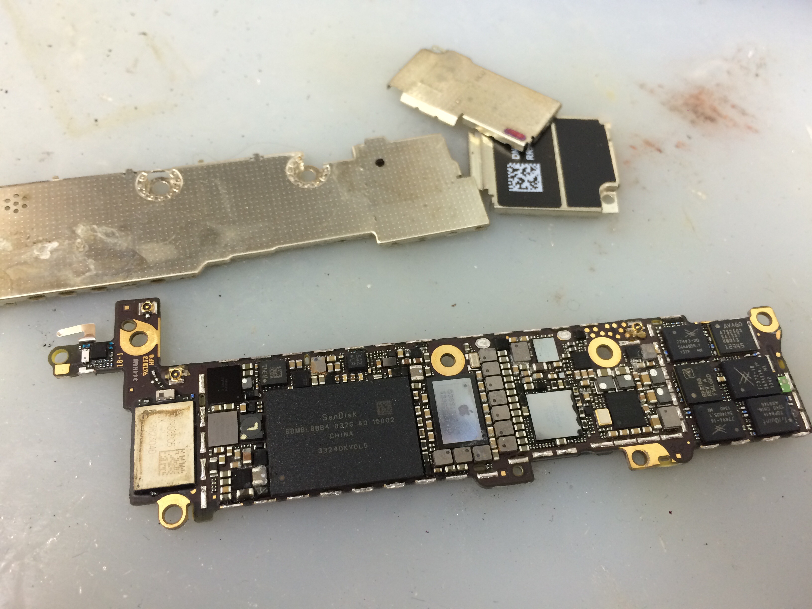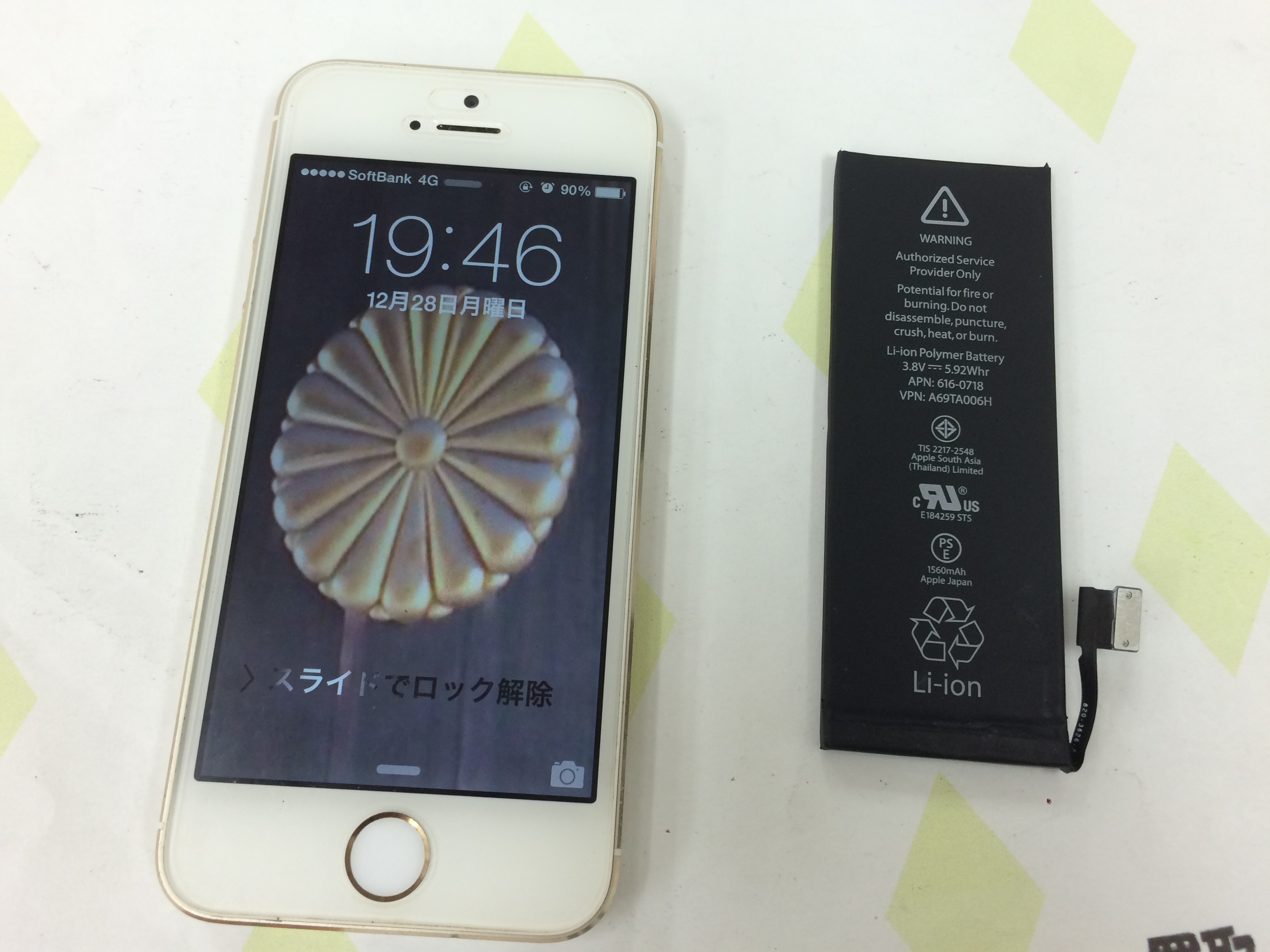 iPhone5s 水没 基板洗浄+バッテリー交換により復旧 ¥6,800