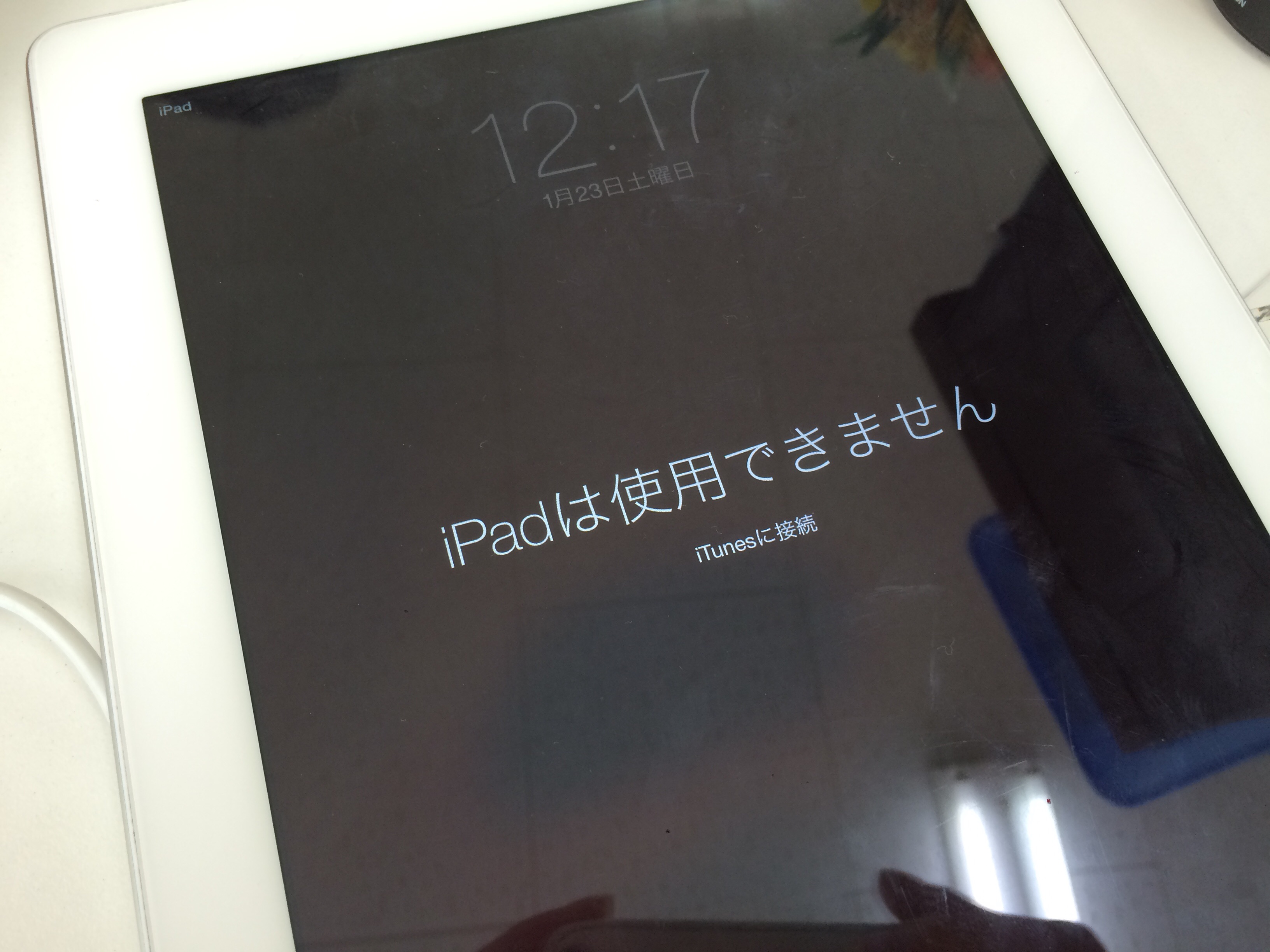加古川市よりiPad4 パスコードを複数回間違え画面に「このiPadは使用できません」と表示され使用できないとご依頼いただきました。