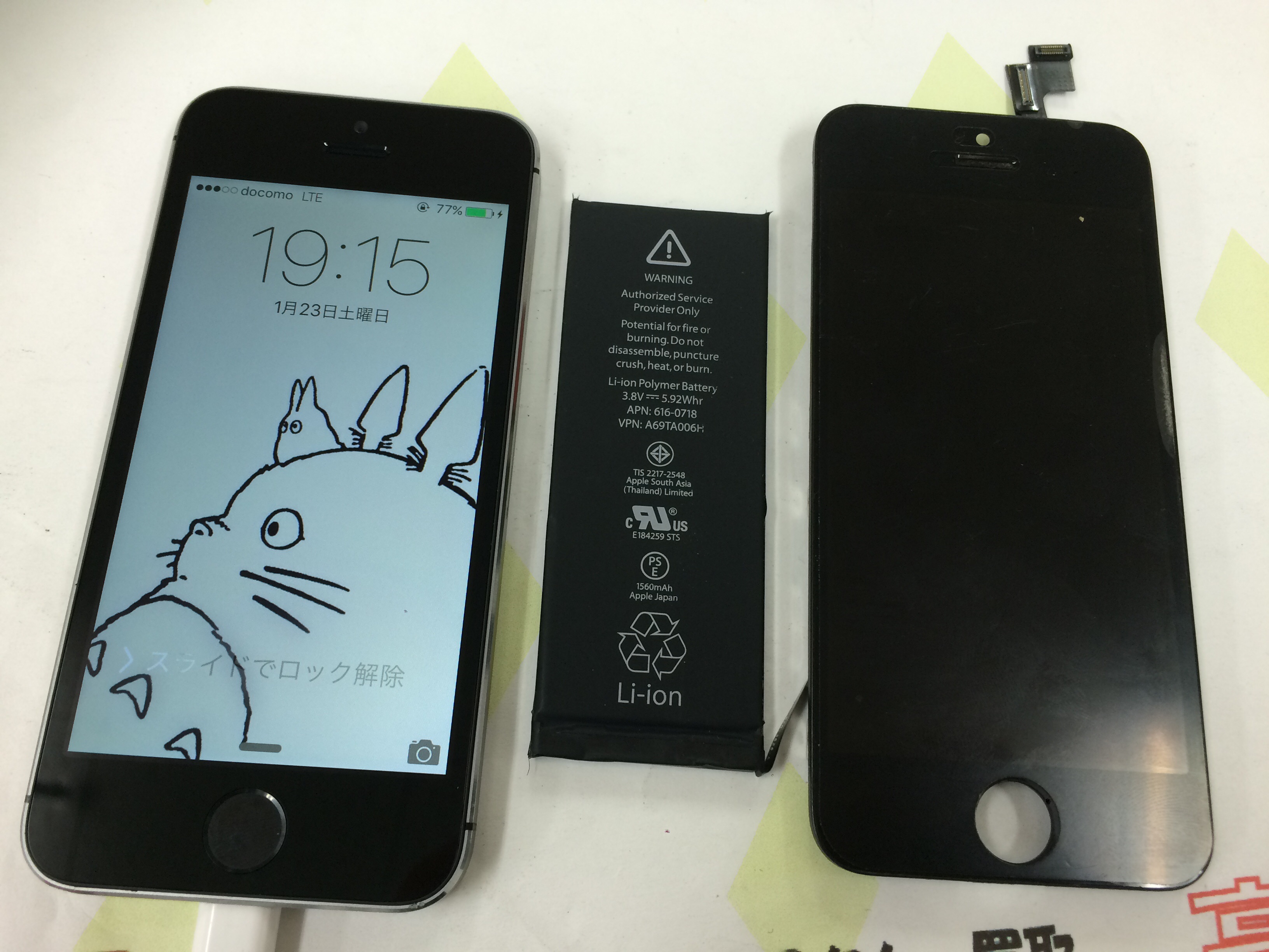 高砂市よりiPhone5s 液晶不良&バッテリー交換修理をご依頼いただきました。