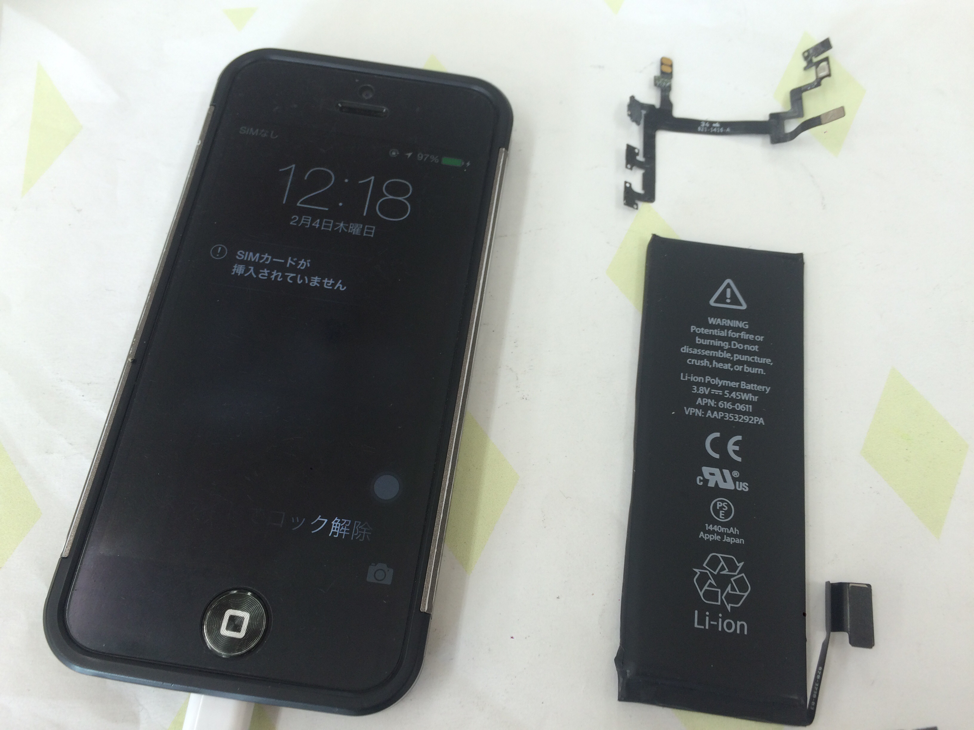 明石市大久保よりiPhone5 バッテリー&スリープボタン交換をご依頼いただきました。
